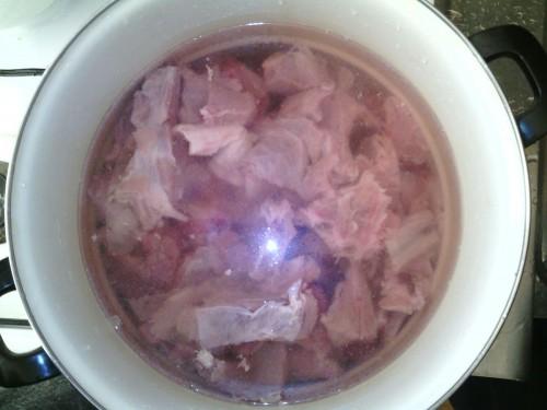 Put it in a pan and fill it with water so that it covers the veal by 5 cm.