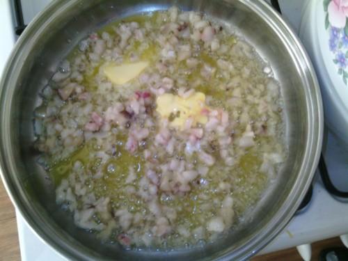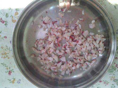 Now finely chop the mutton fat and melt it in a pan.