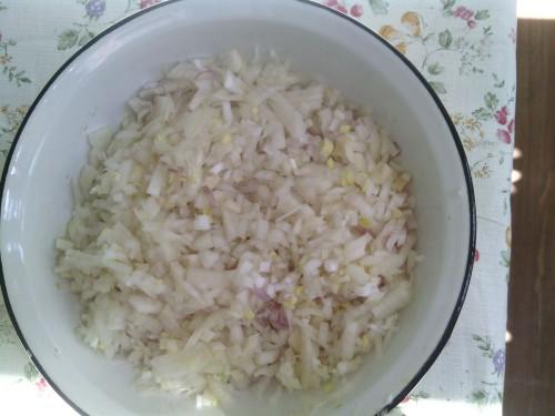Pour finely chopped onions.