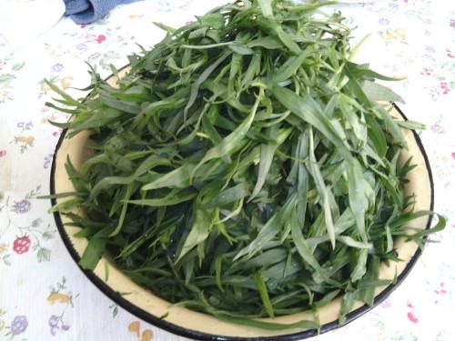 - greens: 300 g parsley, 200 g cilantro, 300 g dill, 3 bunches of green onions, 3-4 stalks of young green garlic, 10-12 bunches of tarragon;