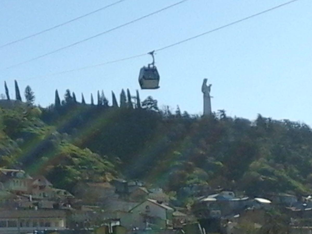 Nearby is the cable car, which leads high to the fortress and to the huge statue of Mother Georgia. This statue is a gigantic woman, in one hand she has a bowl of wine, in the other a sword. It symbolizes both hospitality and militancy, the ability to stand up for oneself and one’s homeland. It is simply impossible to take a picture of her near: it is too big, and by no means fits into the frame.