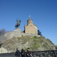 But back to the center of Tbilisi. If you go from Pesky Square along the Kura River, the old Metekhi temple rises to the left on the rock, which, since the 12th century, was destroyed and rebuilt several times. Nearby is the majestic bronze founder of Tbilisi, Vakhtang Gorgasali on horseback.