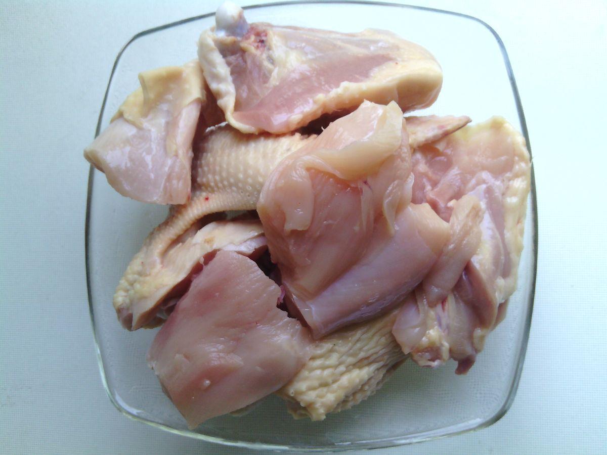 My chicken and cut into pieces.
