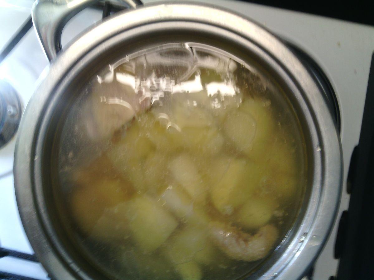 Cook until half cooked, add chopped potatoes.