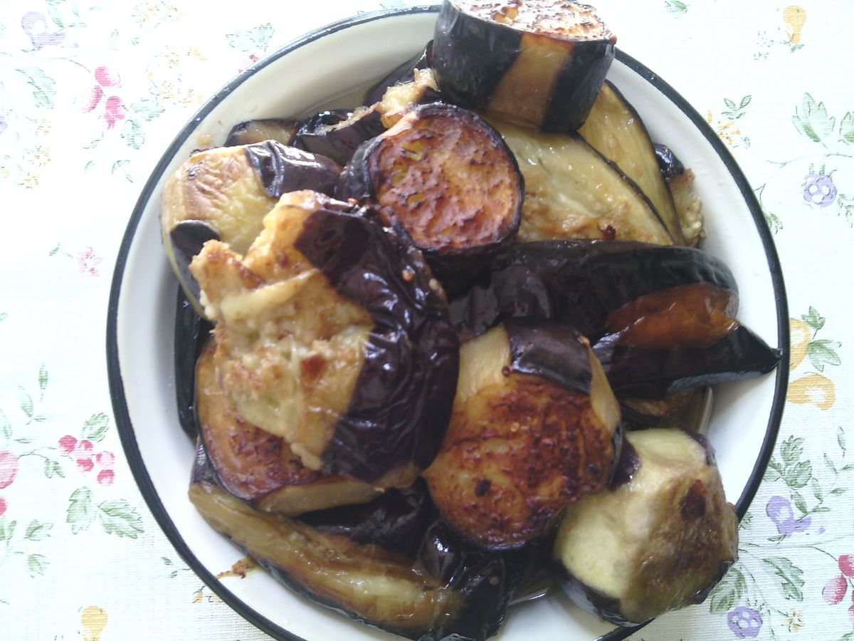 We start cooking. Cut large eggplant, salt. And leave for an hour to get bitterness. Then fry them in sunflower oil over medium heat until golden brown.