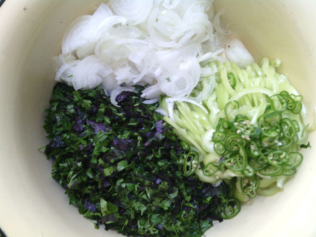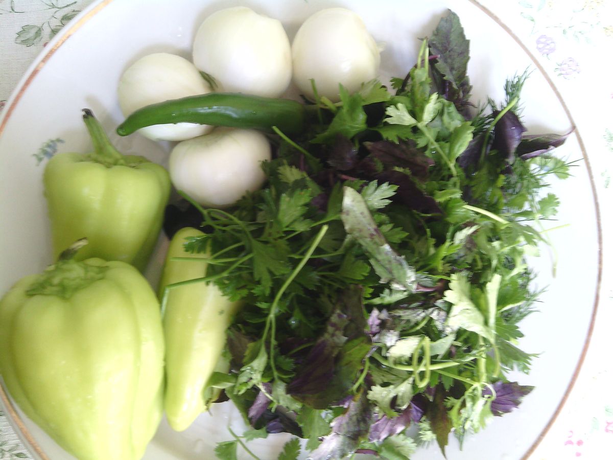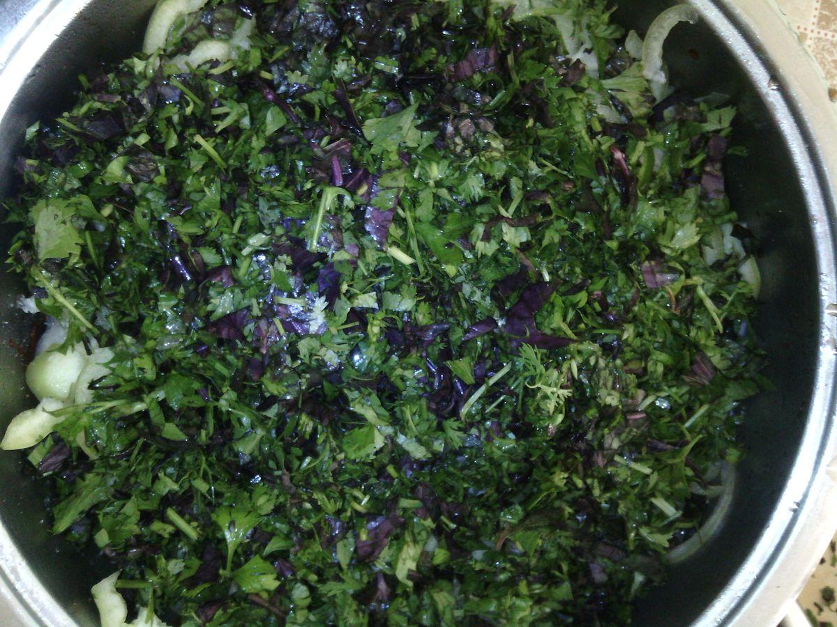 - 100 g of greens: regan, cilantro, parsley, dill;