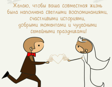 Happy wedding! I shout to you “bitterly” and at the same time wish you the sweetest married life. Respect each other and take care, meet with a smile every day and always strive to fulfill your dreams. May your family be strong, healthy, happy!