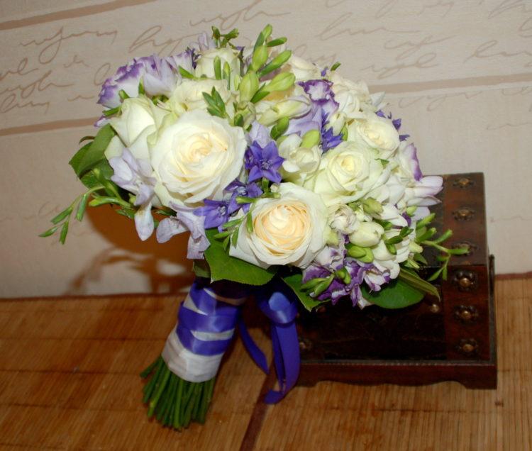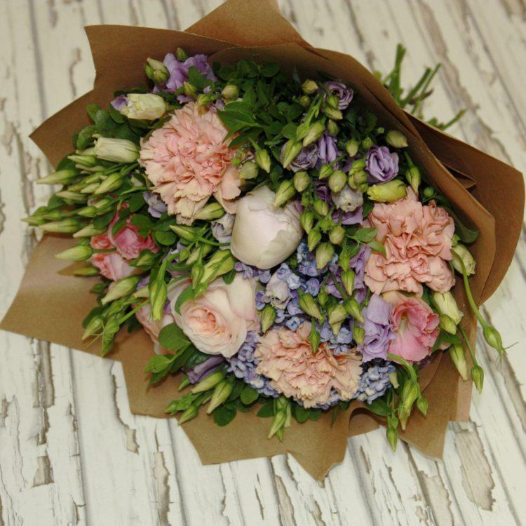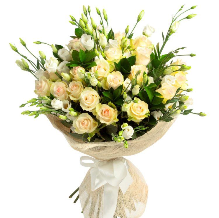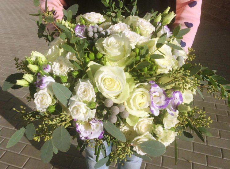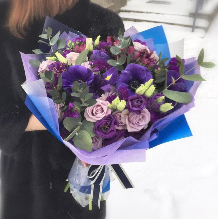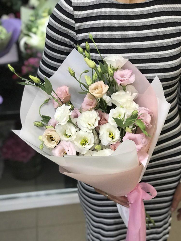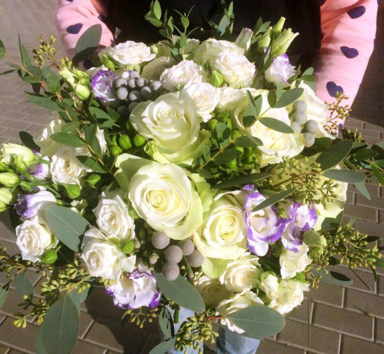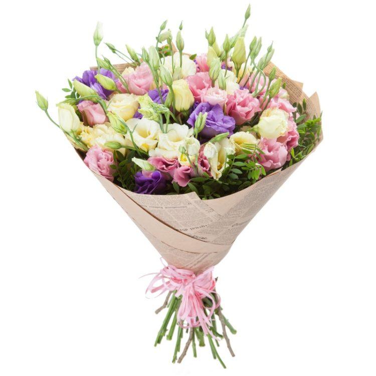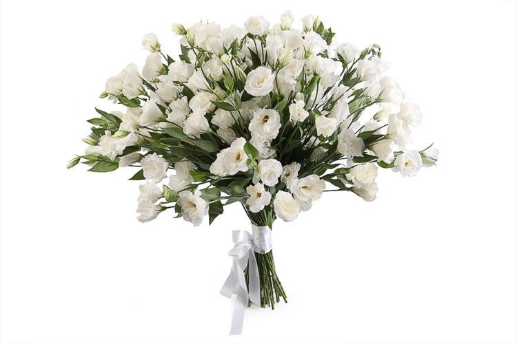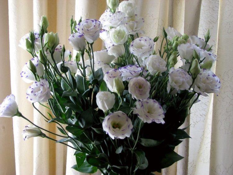 Beautiful bouquets from eustoma (photo below) can be found in various shades. The most common are white eustoma, peach, purple and traditionally blue.