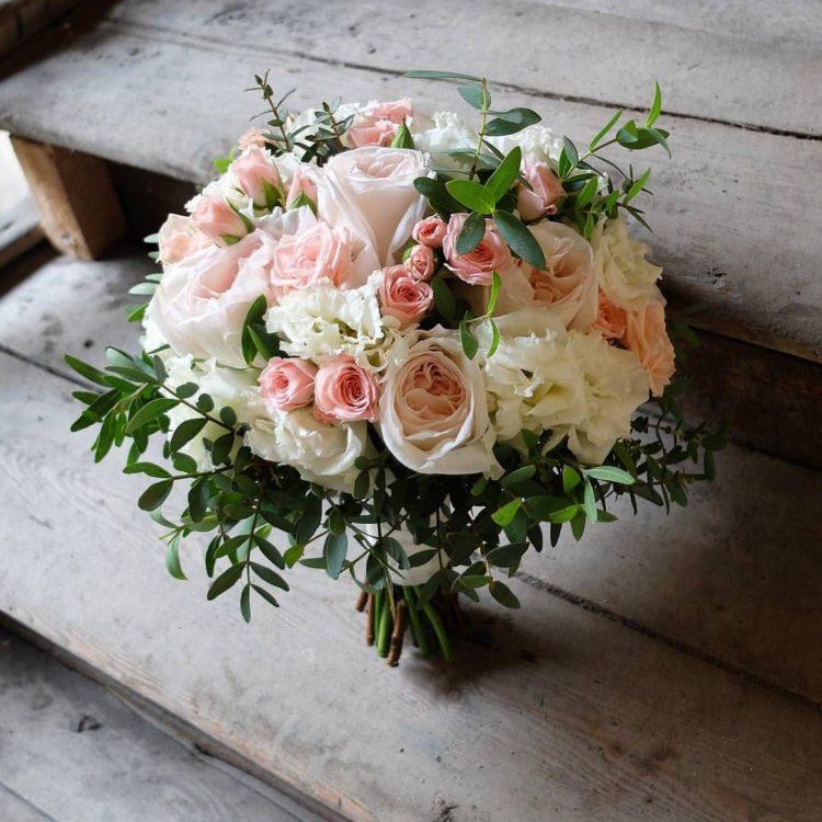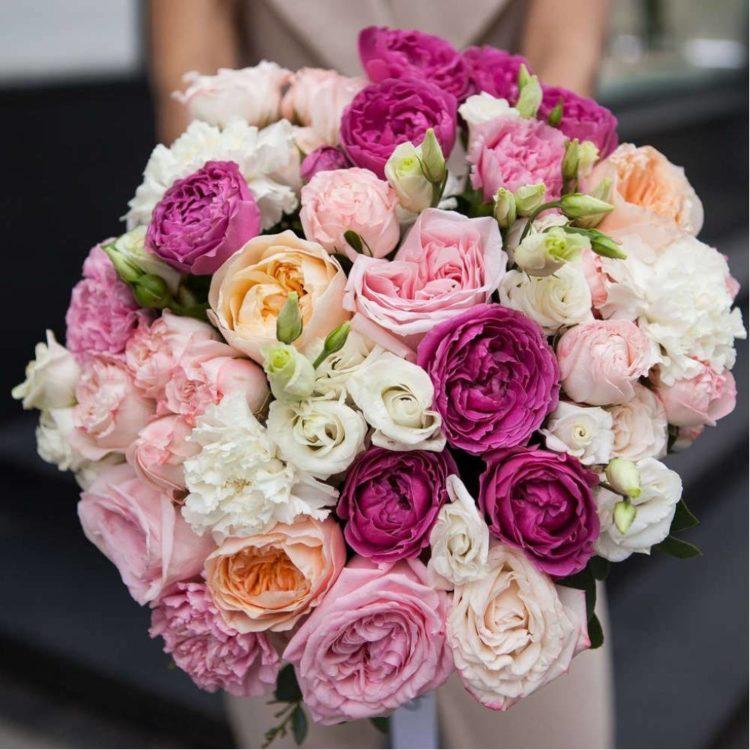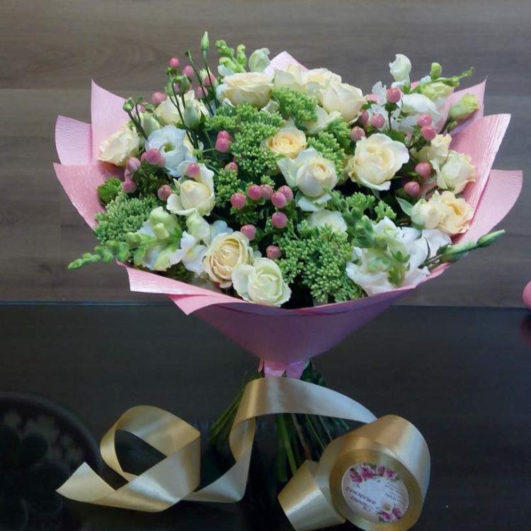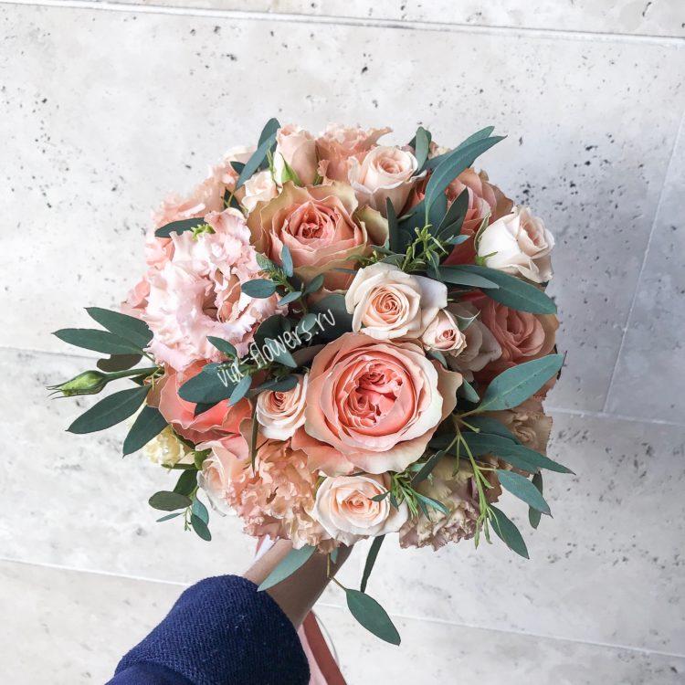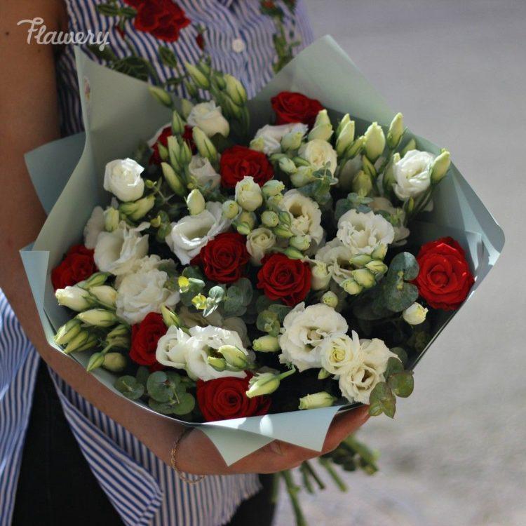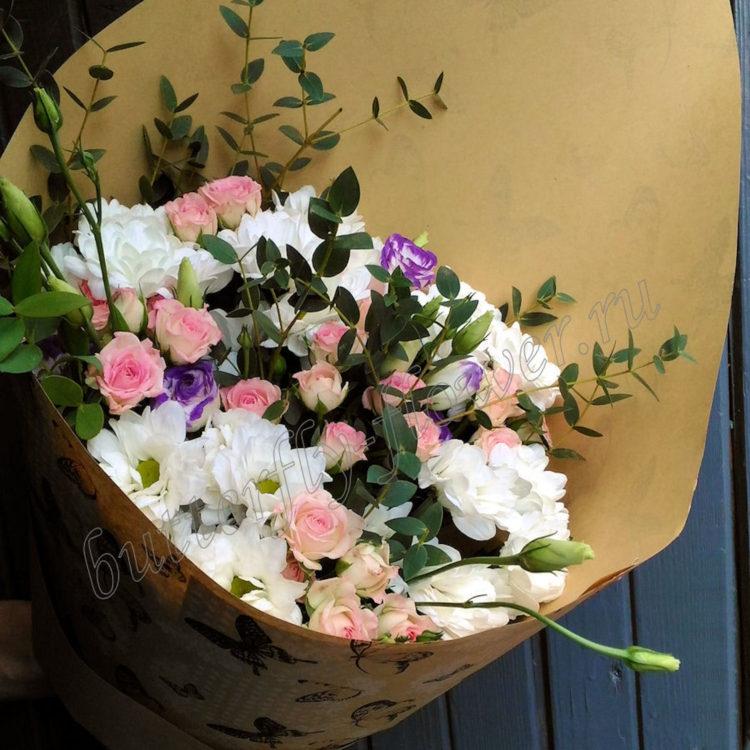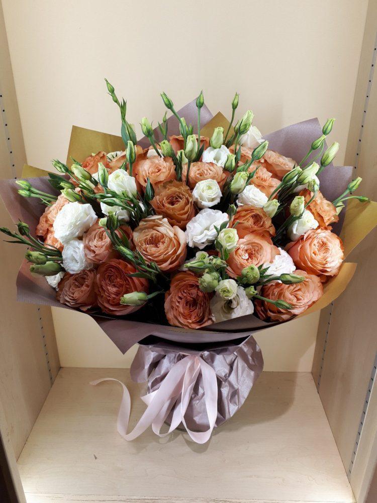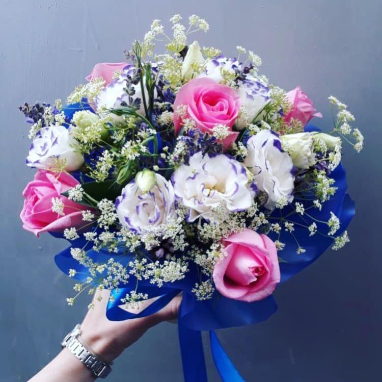 Beautiful bouquets from eustoma (photo below) can be found in various shades. The most common are white eustoma, peach, purple and traditionally blue.