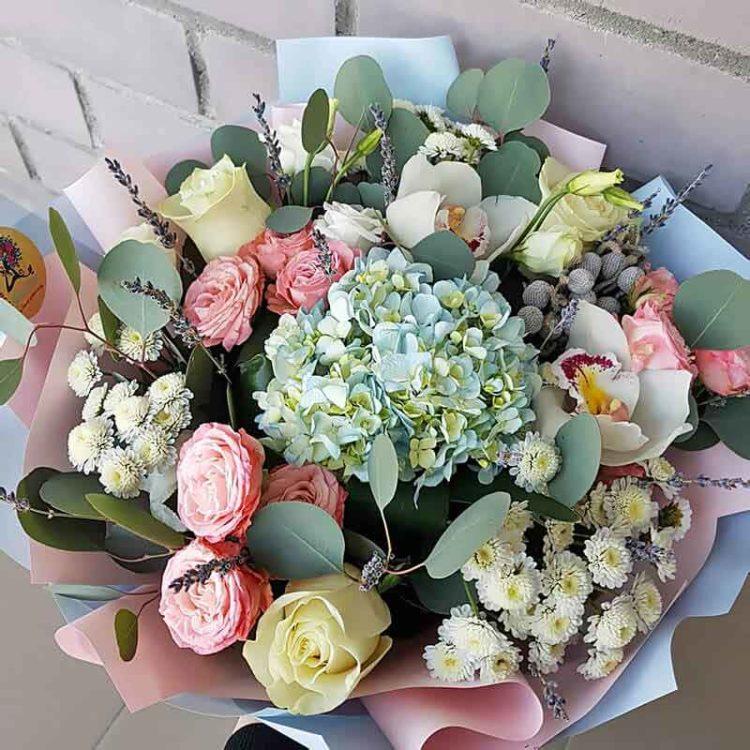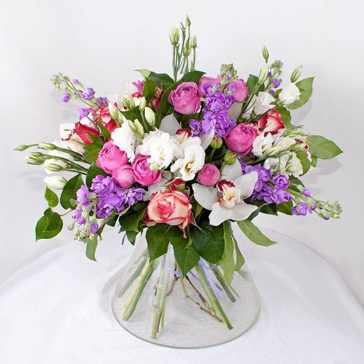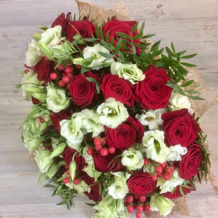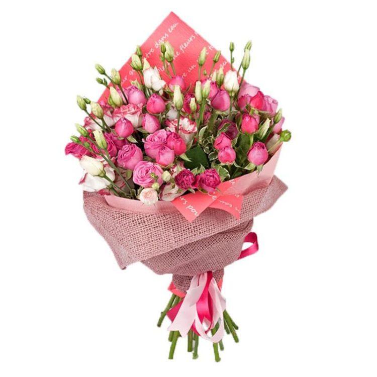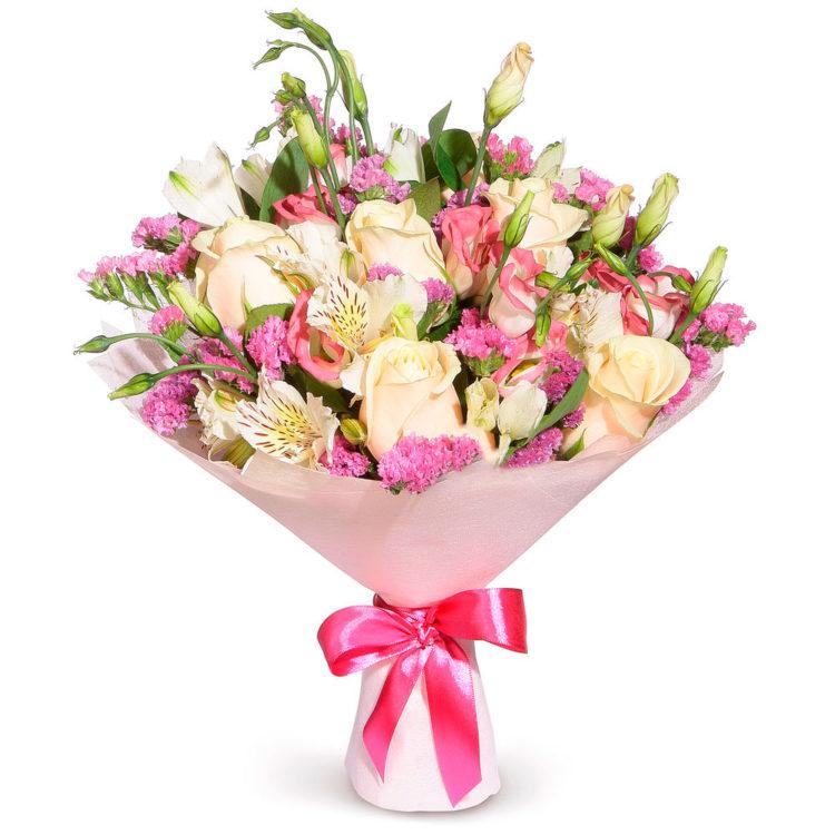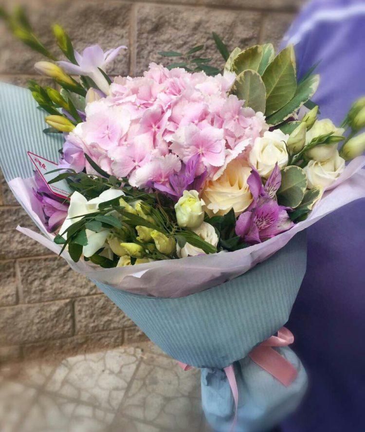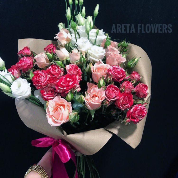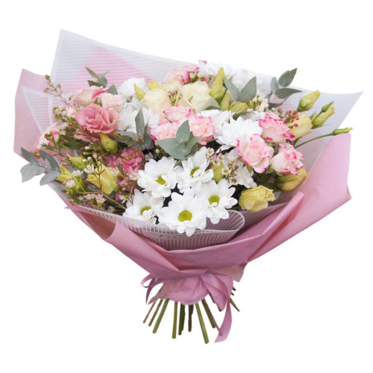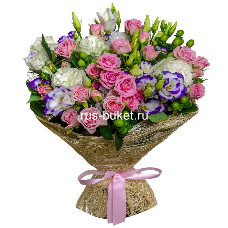 Beautiful bouquets from eustoma (photo below) can be found in various shades. The most common are white eustoma, peach, purple and traditionally blue.