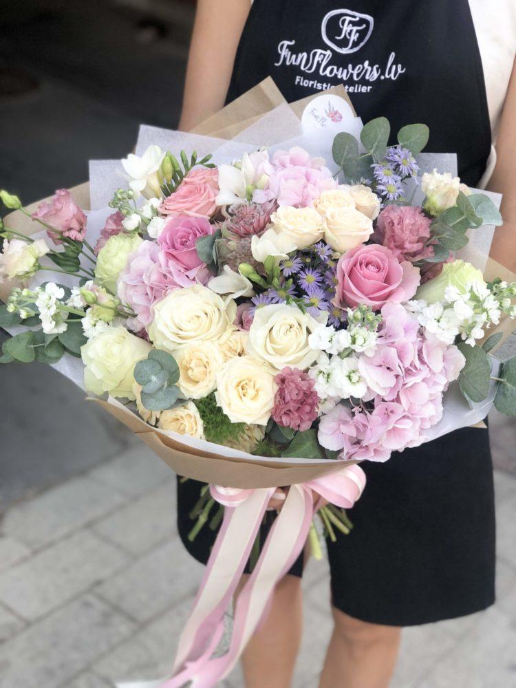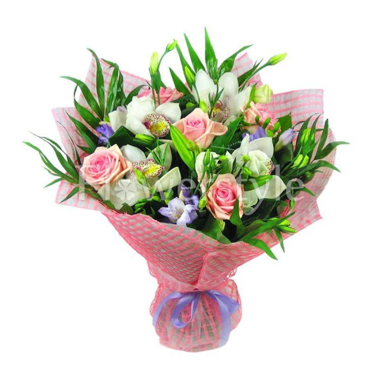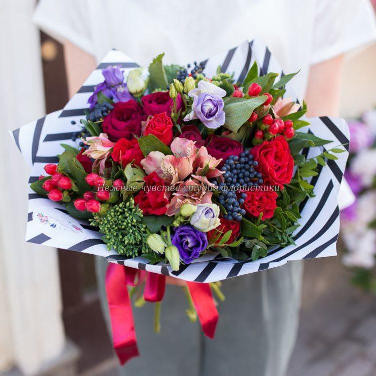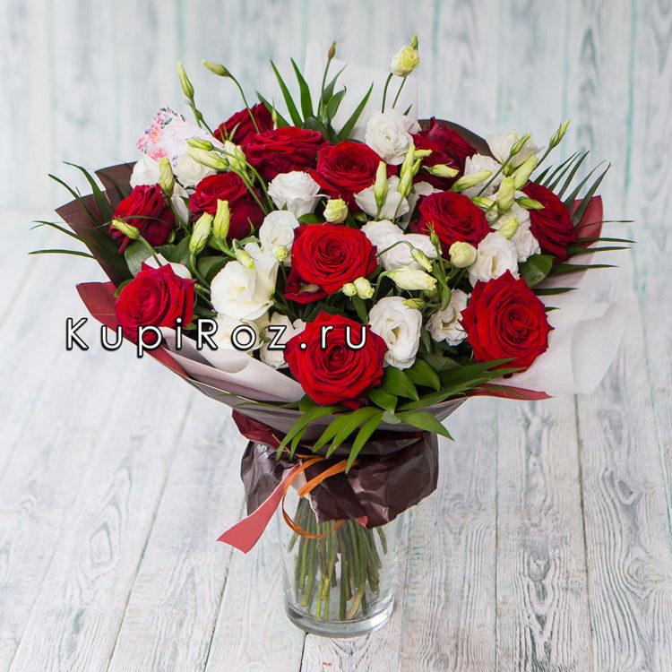 Also, a bouquet of eustoma (this photo shows) can be made in a classic round shape or in an original cascading. Any of the compositions, both in the national team and in the mono-bouquet, will look very impressive.