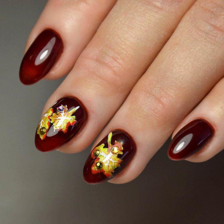 Beautiful autumn manicure is different from summer or spring. You can choose autumn jacket or other ideas of autumn manicure. Choosing a nail design "autumn", be sure to look at the photo - they will help you choose the right idea.