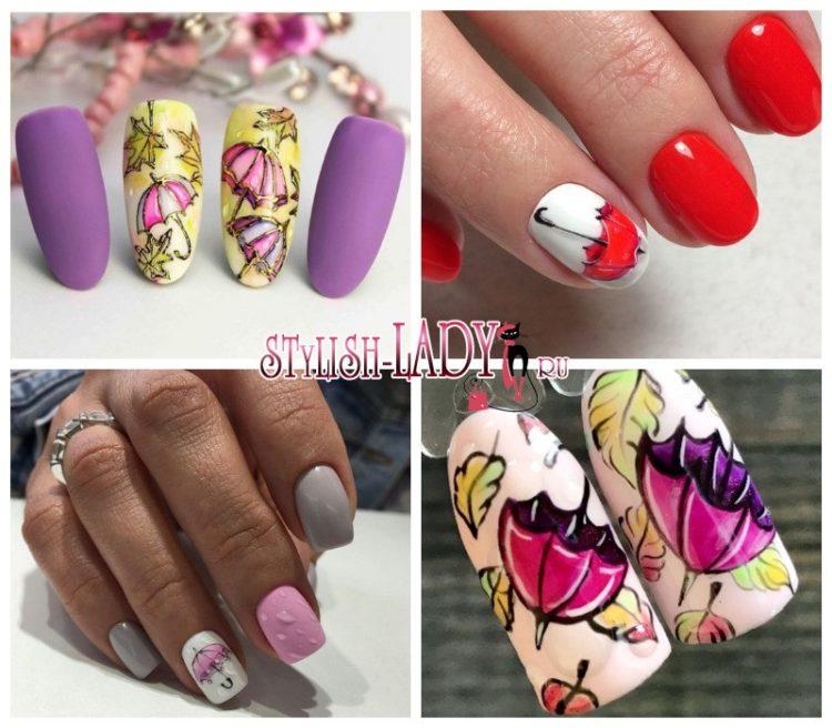 Autumn manicure design can embody fashionable ideas and trends. Moreover, both long and short nails can be beautiful. If you are very fond of French, then the fall manicure of this season can combine white, orange, beautiful shades of dark red. Shellac has many shades for such a manicure, and the color can be chosen without difficulty. You just need to look and choose an idea that your manicurist will embody gel polish. The most fashionable nails can be decorated with mountain ash, other autumn berries, vegetables and fruits. Autumn manicure may also contain drawings of an umbrella or a girl with an umbrella. In general, the autumn nail design is based on yellow, gold, red. Manicure for the fall can be both restrained and bright.