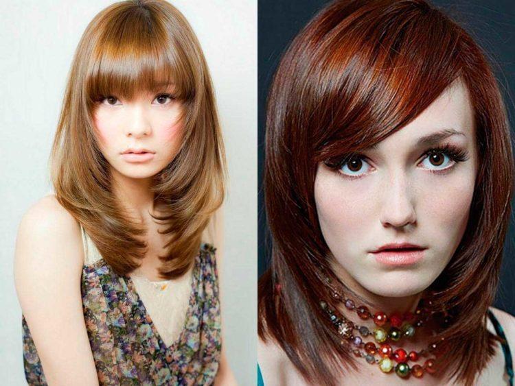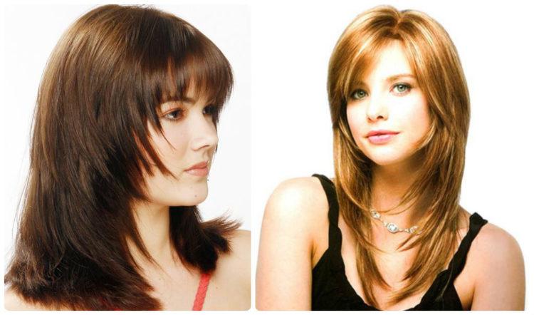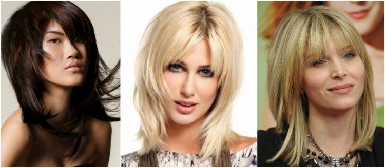 Women's cascading haircuts are good because the hairs in the back are cut with a double ladder (although they can consist of more layers). Therefore, the cascade for medium hair with bangs (photo you will find below) is suitable for any type of hair. The type of bangs can be straight, elongated, oblique or ragged - haircuts cascade on medium hair with bangs will look advantageous with any of them. Below you will find more than 100 examples of this versatile haircut cascade with bangs on medium hair (photos of interesting ideas).