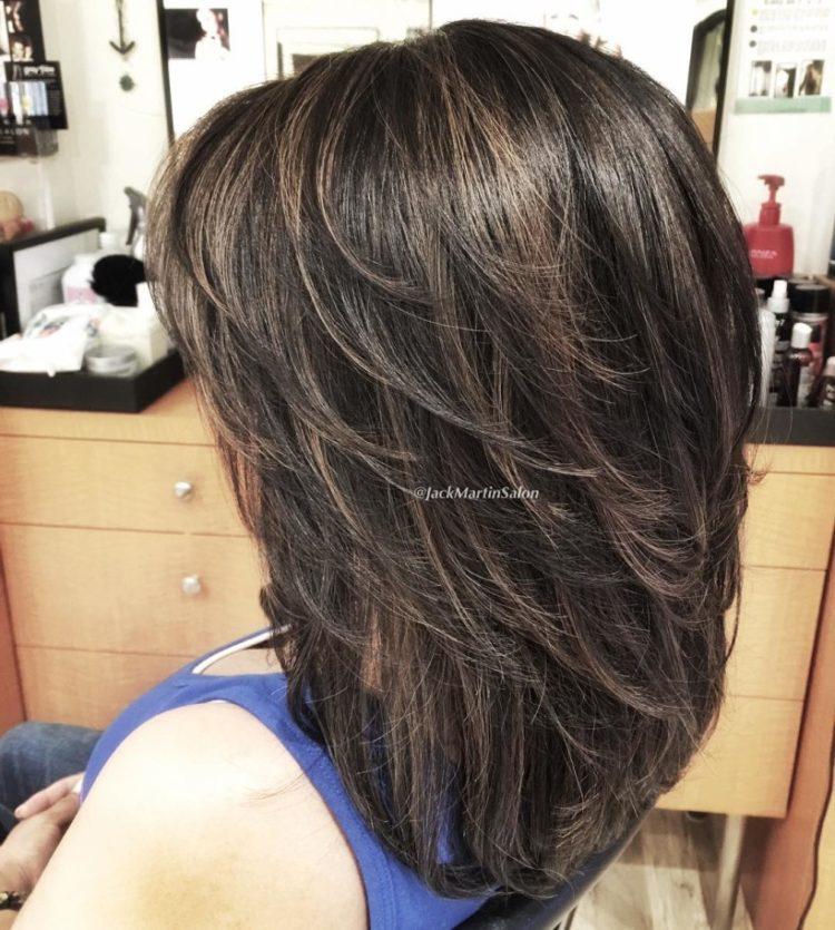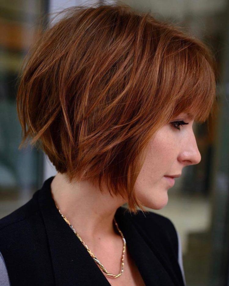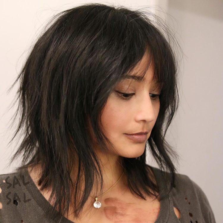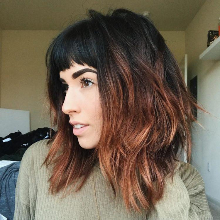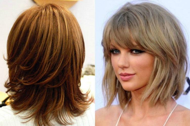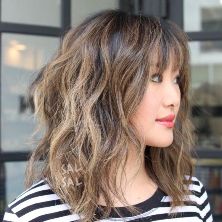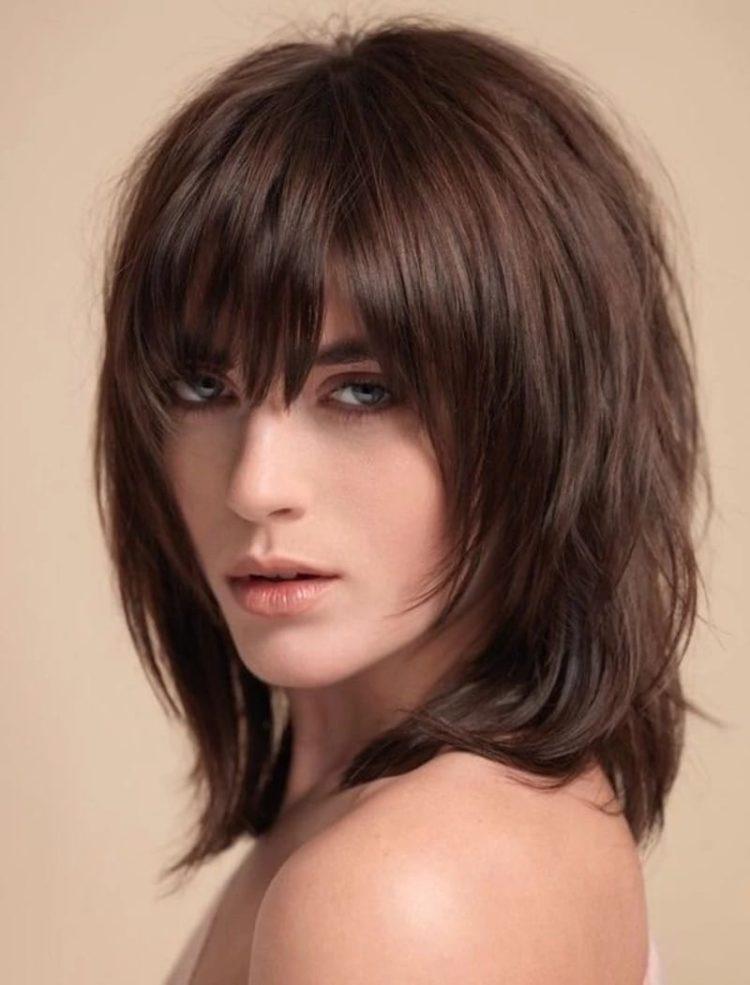 In this article you will find pictures of a cascade hairstyle on medium hair with bangs. Due to this, you can take a closer look at the haircut cascade on medium hair with a slanting bangs and its various variations. Examples for you are collected when a haircut cascade with bangs on medium hair looks stylish and beautiful. Remember to consult your personal hairdresser to make the right choice. A cascade of medium hair (photos are presented below) with a bang will help you understand fashion trends. But blindly chasing fashion is not always the best option. Try to compare these examples with your appearance and understand how much the cascade hairstyle for medium hair with bangs will suit you.