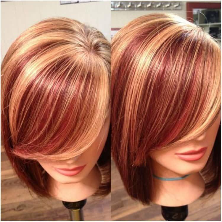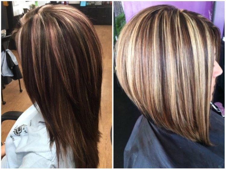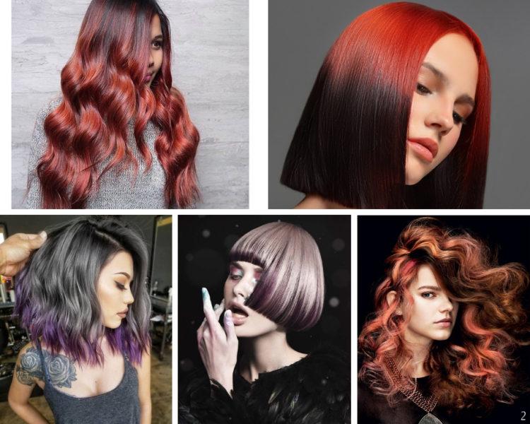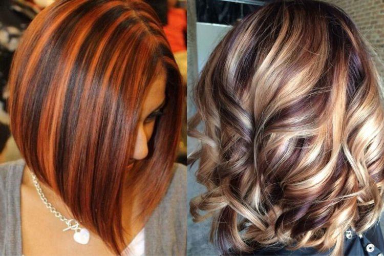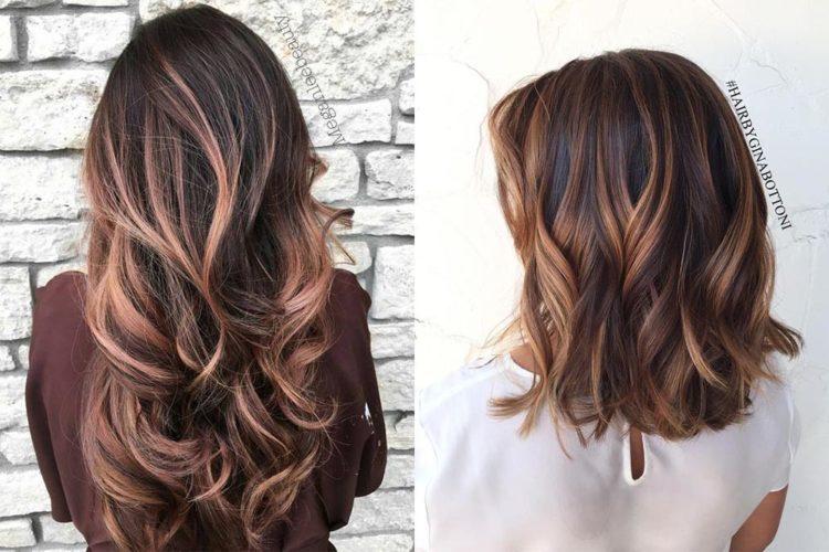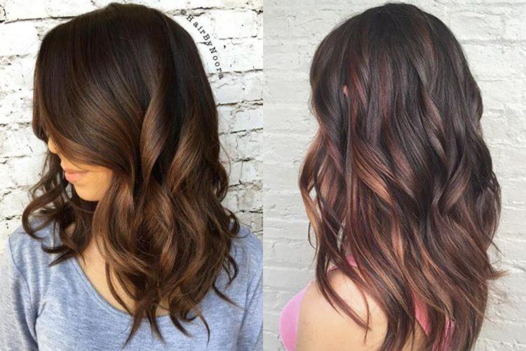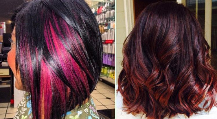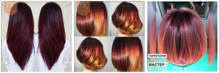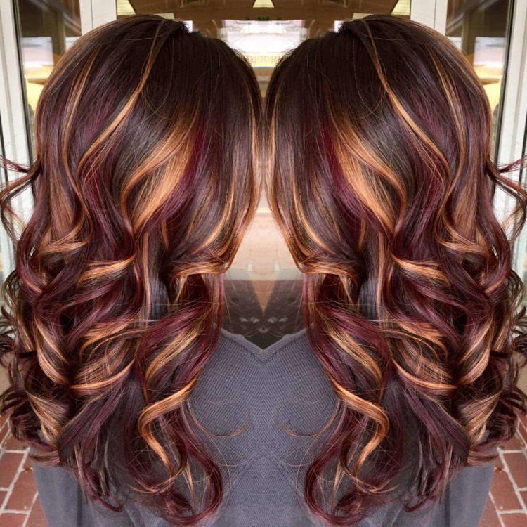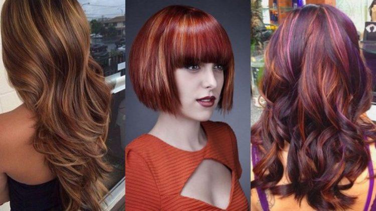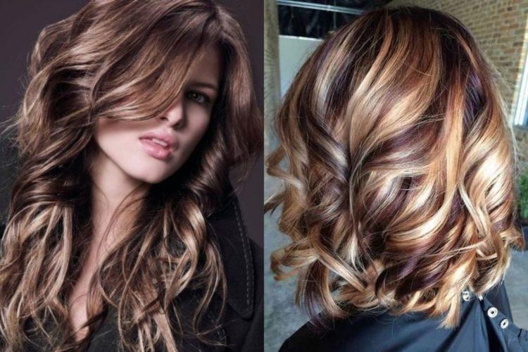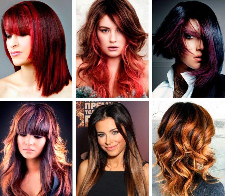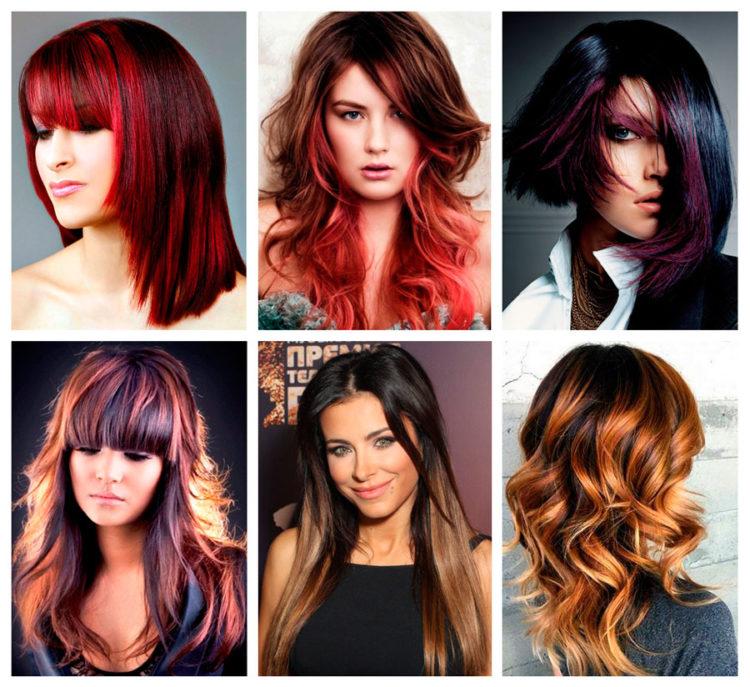 Coloring on brown hair looks beautiful with a combination of several shades: from burnt white to dark chocolate. A red color loves a combination with lighter strands or bright tones of red and purple.