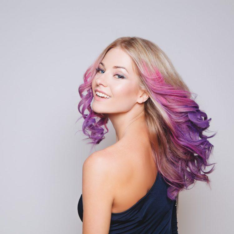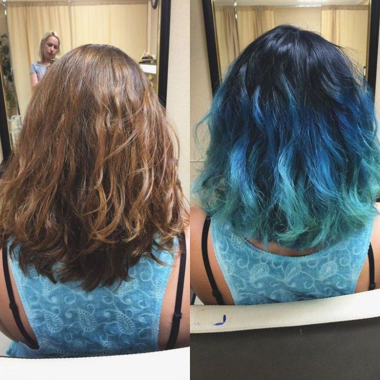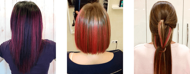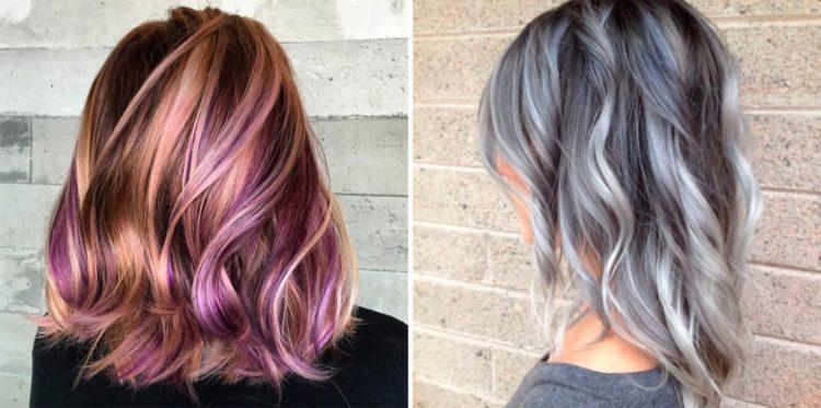 For hair of different colors, coloring is done in different ways. This feature is clearly visible in the photo: hairdressers select colors based on the natural shade of the client’s hair. For example, fashionable pink is hard to reproduce on black hair. Therefore, for dark hair, purple and deep blue shades are preferable.