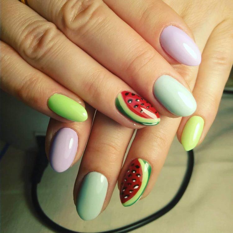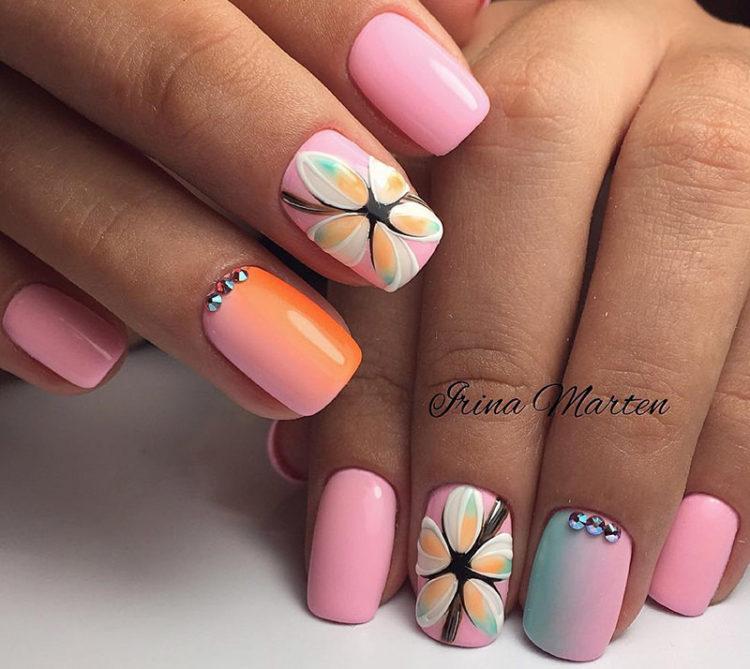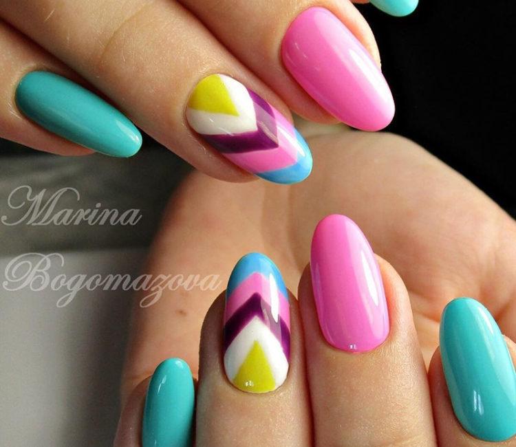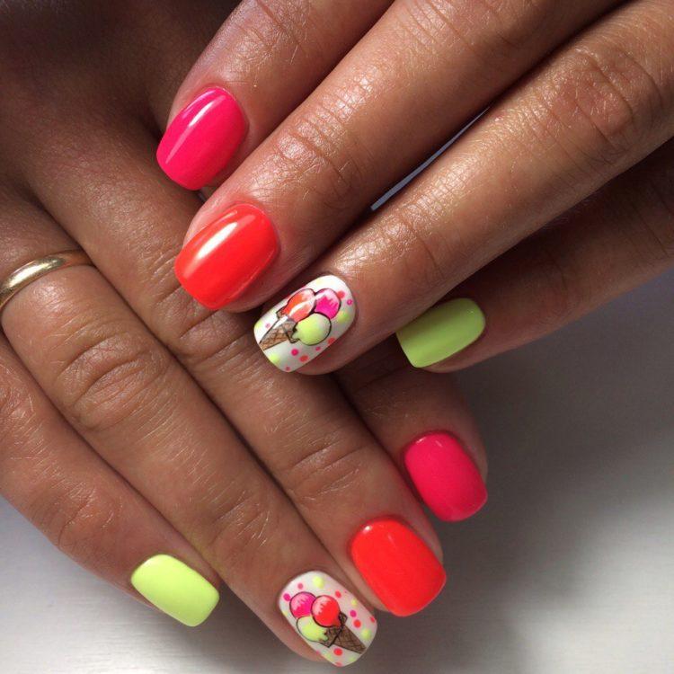 Moreover, short nails can also look very stylish. And do not forget that the jacket with different bright colors is also summer manicure, not winter. After all, bright manicure "summer" is primarily bright colors. Nail design "summer" has a lot of options. After looking at the photo, be sure to choose a summer nail design that your girlfriends will admire. Or maybe you will have the most fashionable nail design. In the summer, you can also realize bold ideas and even talk about hidden desires with the help of manicure.