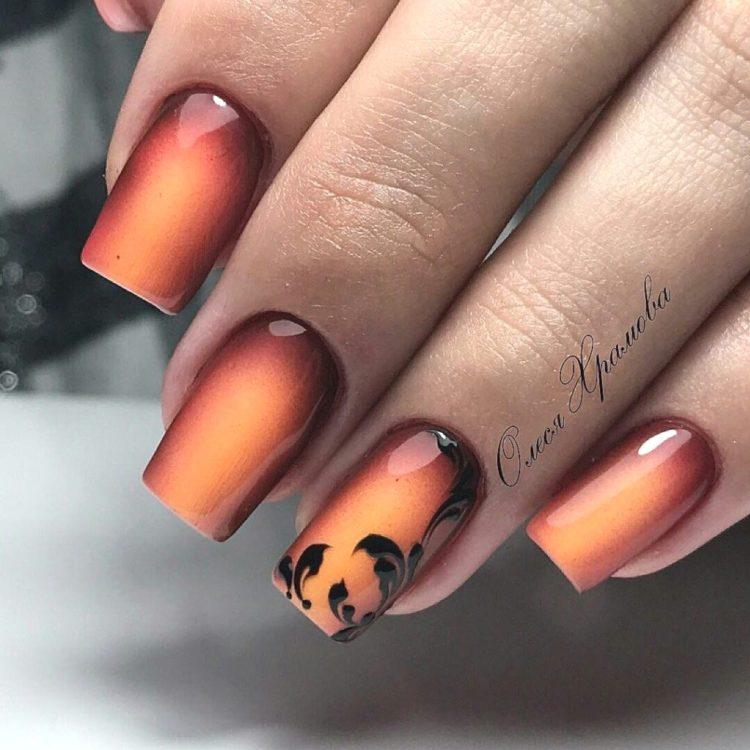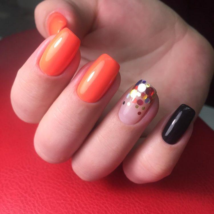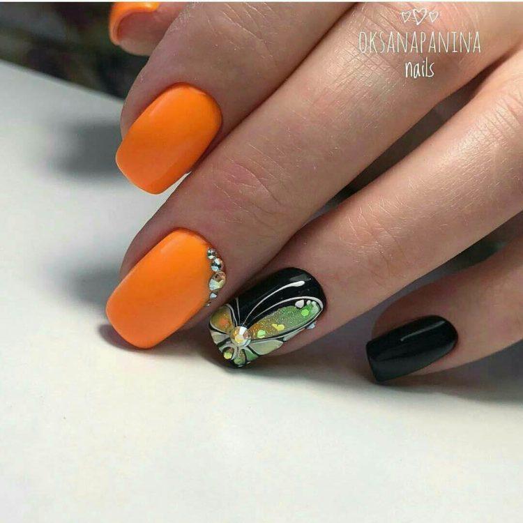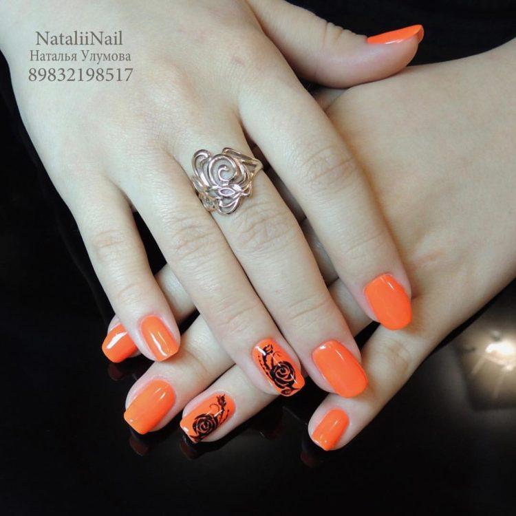Gentle trends also should not be left without attention. Orange nails, the design of which is gaining popularity, can be gentle. Manicure orange with black in this case is no exception. The main thing is to properly design and implement a stylish drawing.