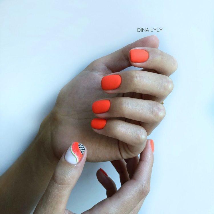 Next, an orange nail design in all its colorful variety is presented to your attention. You will fully learn the orange manicure, the photos of which will become the basis for the implementation of your personal fascinating ideas that can not only surprise, but also charm everyone around. Also note that among the further proposed photos there are indeed bold ideas, which not every representative of the fair sex can realize.