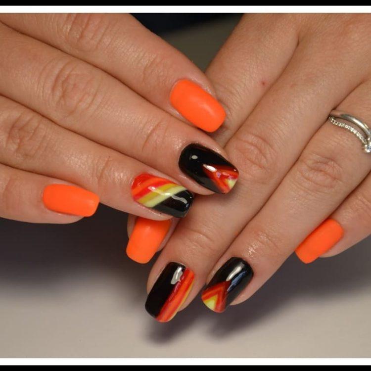 Fashionable orange nail design will easily pour into your wardrobe. Yellow-red and orange manicure, the photo of which is presented below, is one of the most popular today. In this case, black-and-orange manicure deserves special attention. He looks spectacular and alluring.