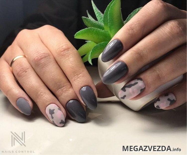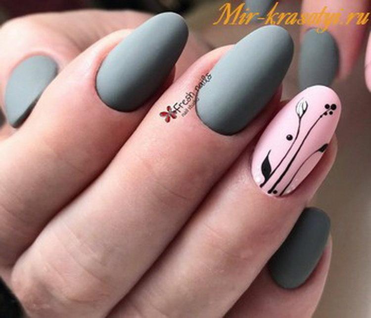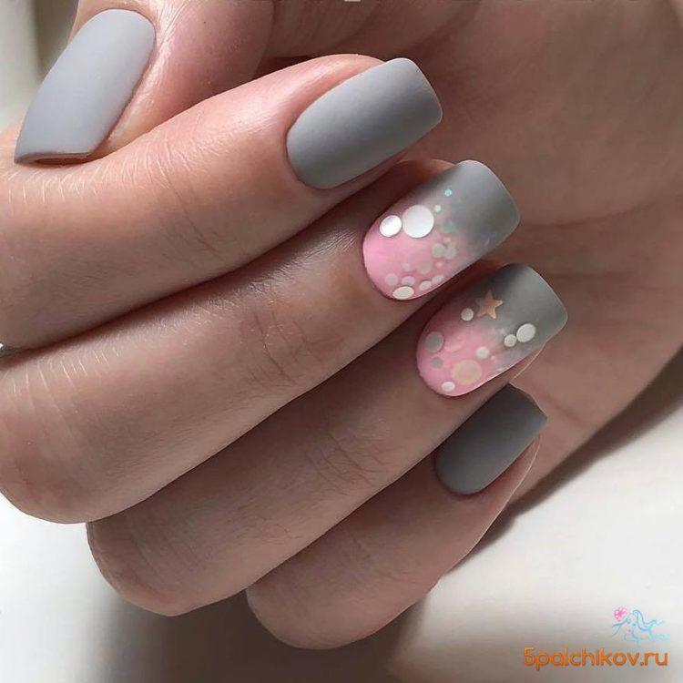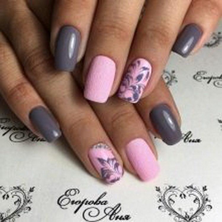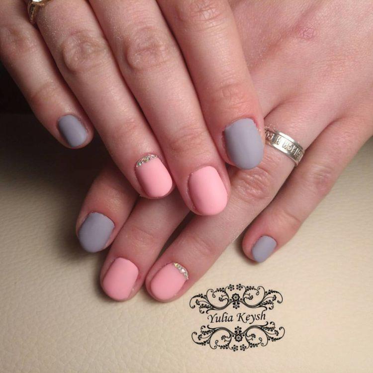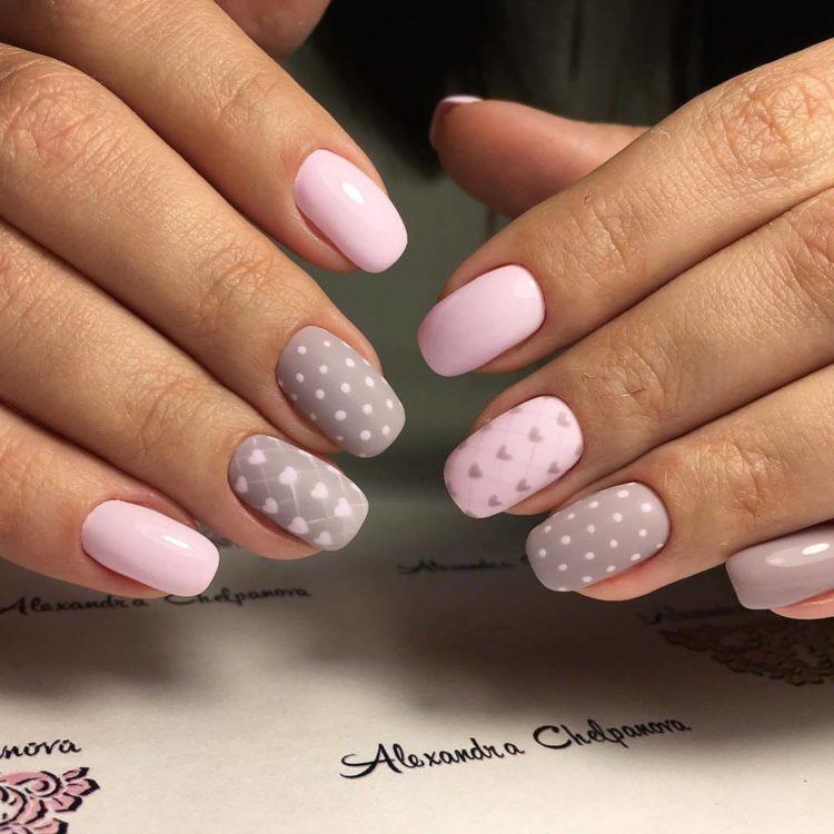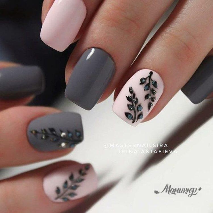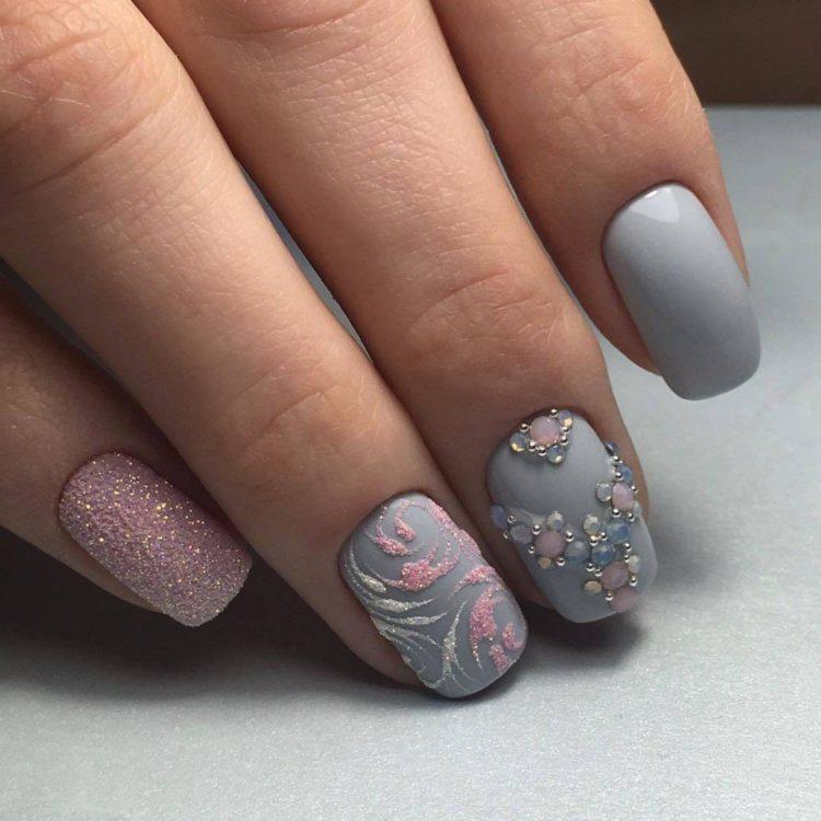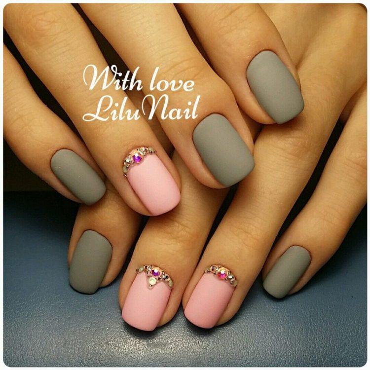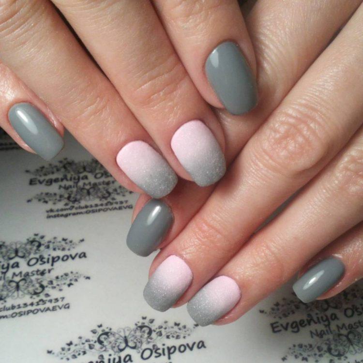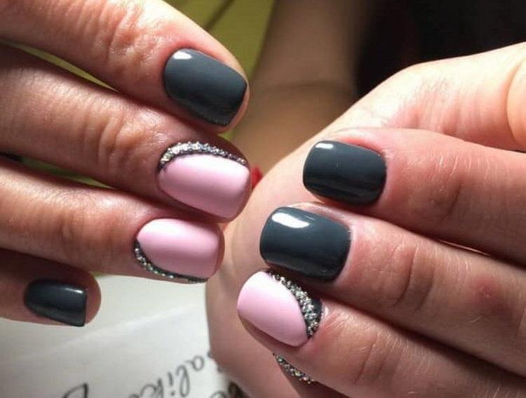 Nail design pink with gray implies many different options. It can be a beautiful gray-pink ombre, the usual monochrome gel polish, where pink and gray alternate (it will also look stylish if such a manicure is matte), chic sakura flowers painted on a dark gray background and slightly decorated with silver, gray manicure pink (a photo, of course, is attached) with polka dots, gray-pink manicure (photo below) under a “leopard”, pink and silver manicure (alternating ordinary monochrome shellac and silver shellac with sparkles), etc. Below you will find pink-gray manicure (photo, to infinitely same, too) in a variety of variations.