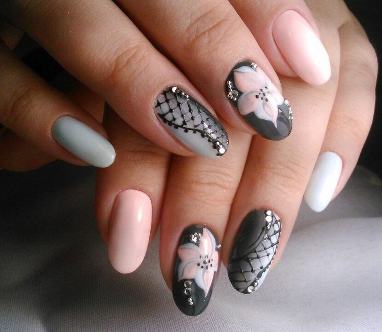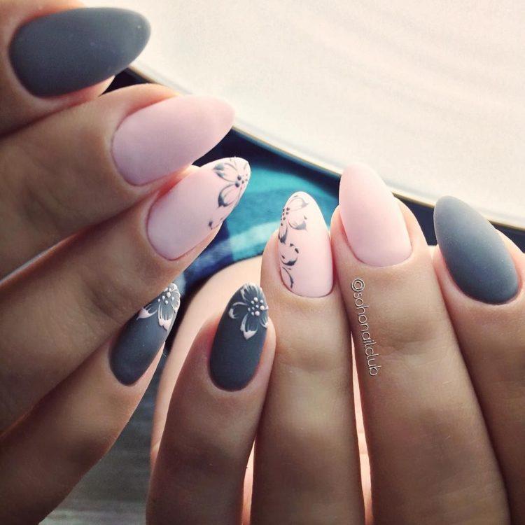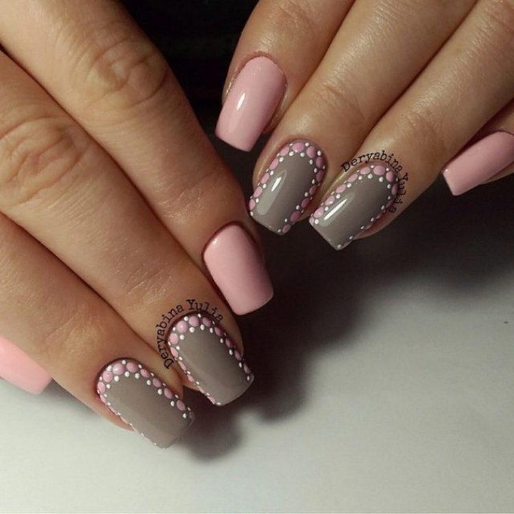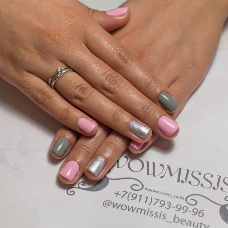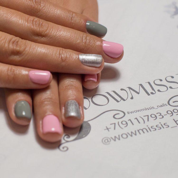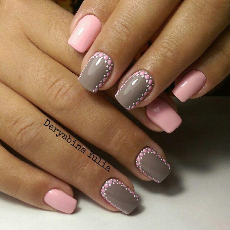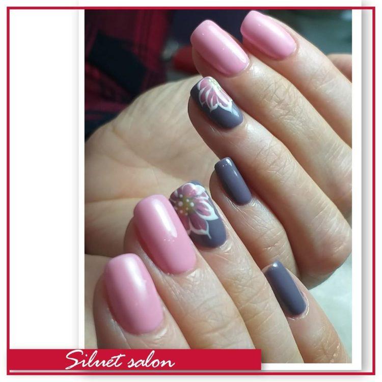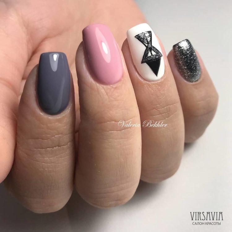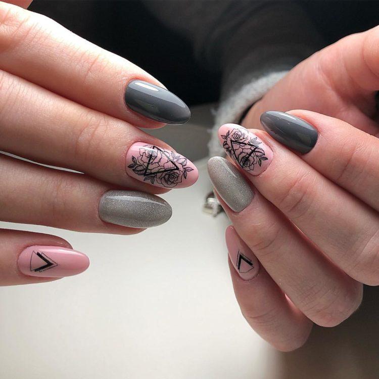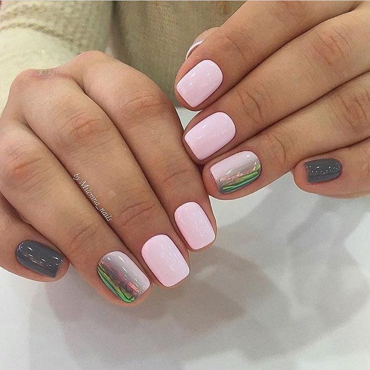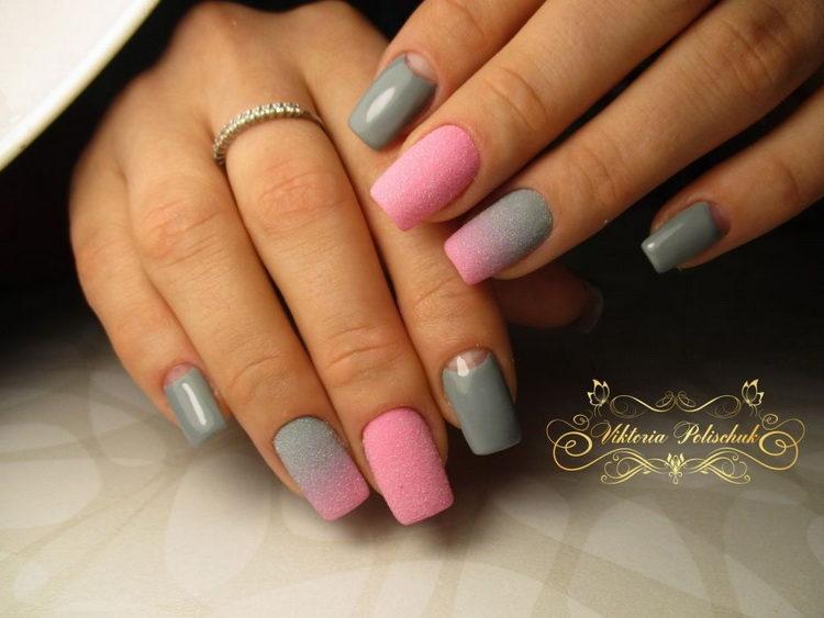 Nail design pink with gray implies many different options. It can be a beautiful gray-pink ombre, the usual monochrome gel polish, where pink and gray alternate (it will also look stylish if such a manicure is matte), chic sakura flowers painted on a dark gray background and slightly decorated with silver, gray manicure pink (a photo, of course, is attached) with polka dots, gray-pink manicure (photo below) under a “leopard”, pink and silver manicure (alternating ordinary monochrome shellac and silver shellac with sparkles), etc. Below you will find pink-gray manicure (photo, to infinitely same, too) in a variety of variations.