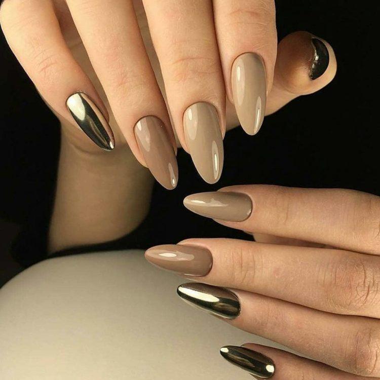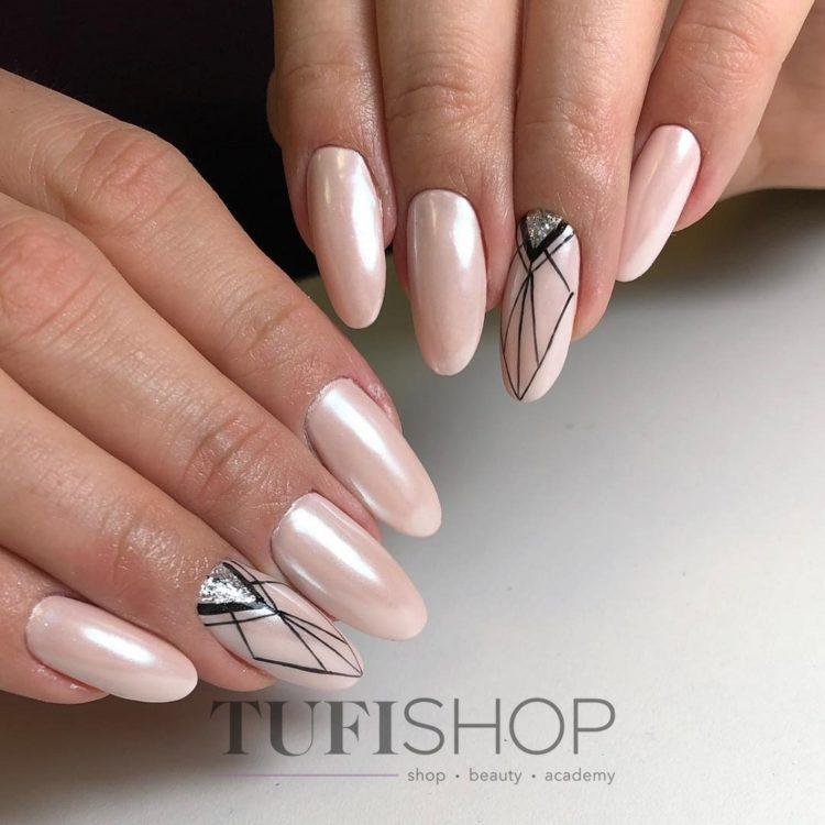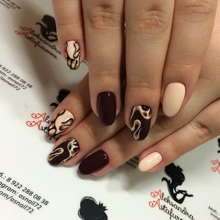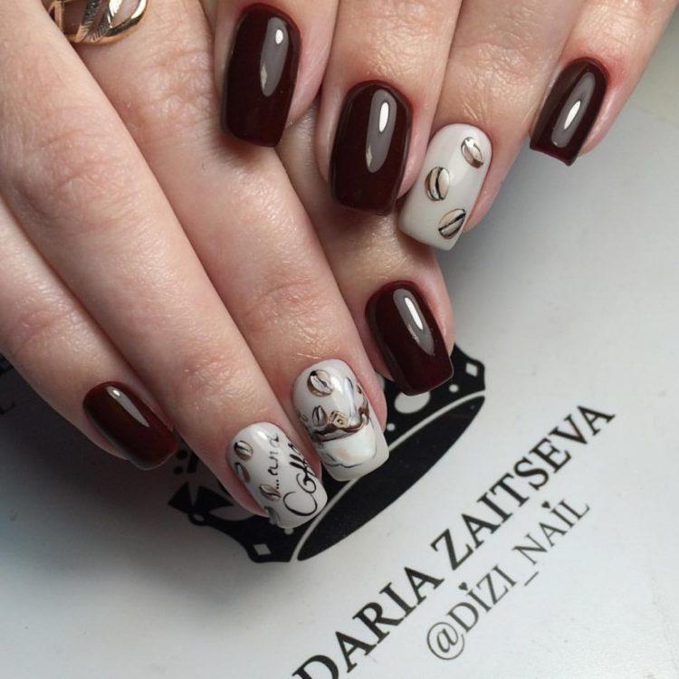 When looking at a milk-colored manicure with rubbing or a coffee-colored manicure with milk with a pattern, be sure to pay attention to the latest in the field of plate design. Given current trends, you can create your most non-trivial images at home.