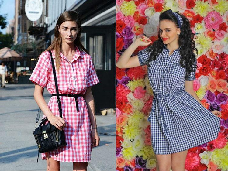 What color can a dress be in a cage: current photos show that now the color for a cage can be very unexpected. One of the prominent trends of the year is bright shades. Therefore, the current cell has a bright yellow, red, green or blue color. If in doubt, will bright colors be demanded in the future, then take the dress in a red cage. A red checkered dress or shirt dress will look modern for a long time. And, no doubt, the classic black and white or black and red combination is always a win-win option.