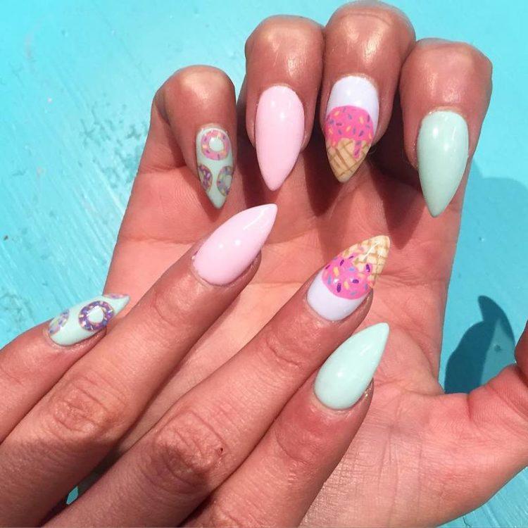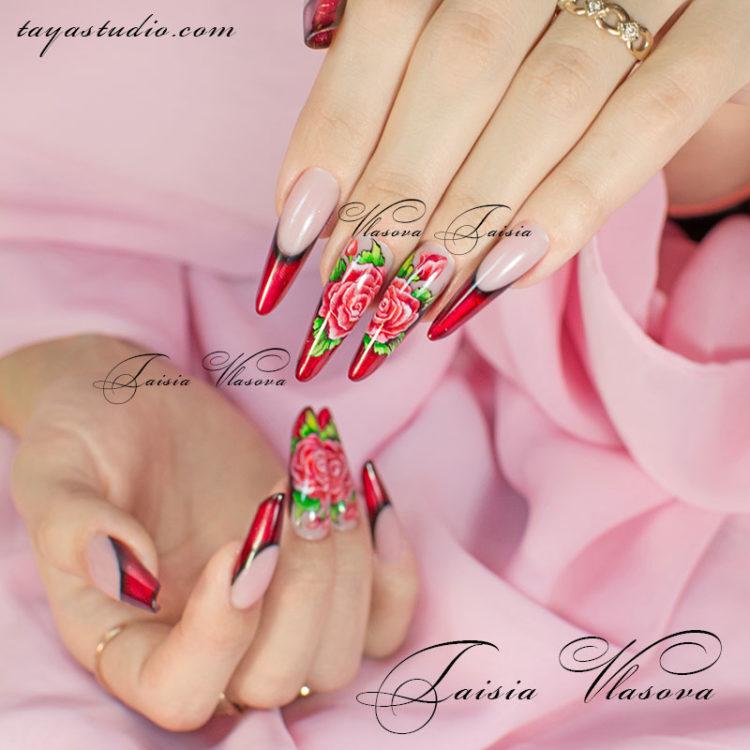 A manicure with drawings can be done on both short and long nails, a professional will always pick up suitable drawings for nails of any shape and length. It is not always necessary to make complex drawings, even the simplest drawings on the nails look attractive and not intrusive. As a rule, nails with a pattern are covered with gel polish, which holds well. Drawing on nails can be done using various techniques and techniques. For example, the broken glass technique, which is done using pieces of foil, the texture of the stone, kamifubuki, when confetti is laid out on transparent nails. A manicure with a geometric pattern never goes out of fashion, so you can safely make light drawings on the nails in the form of triangles or squares. Geometry on the nails will suit any style. Beautiful drawings on the nails in the form of flowers look romantic and gentle.