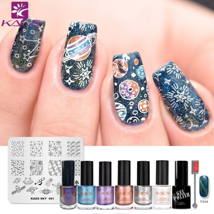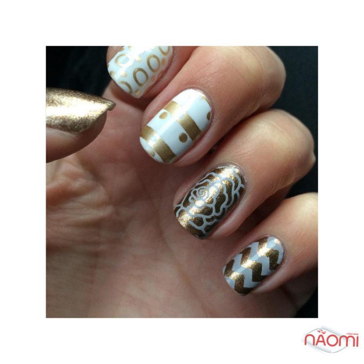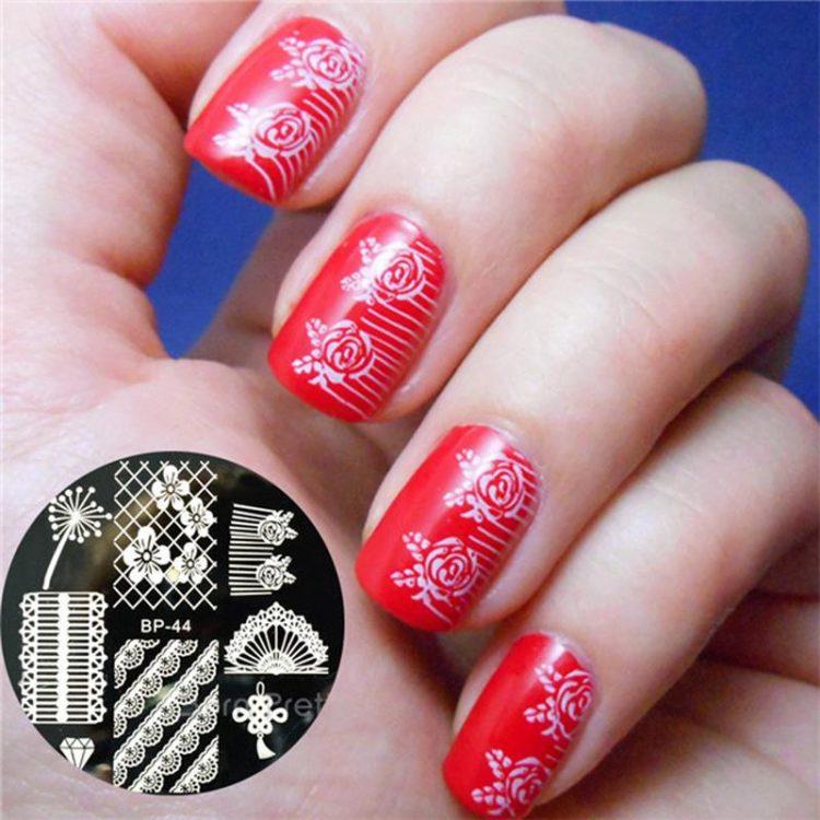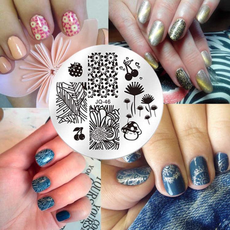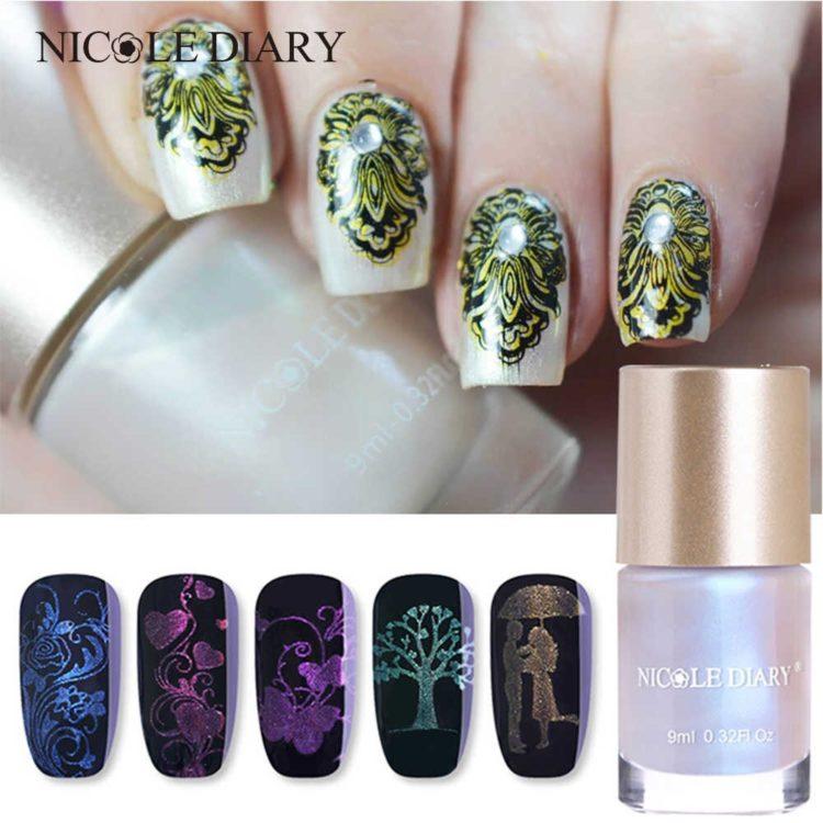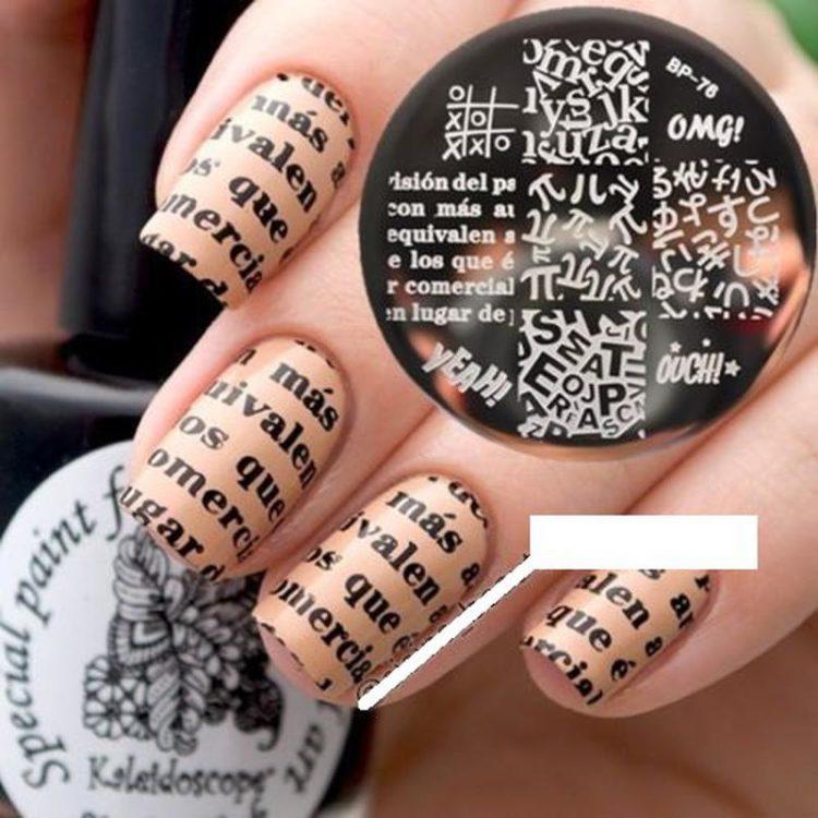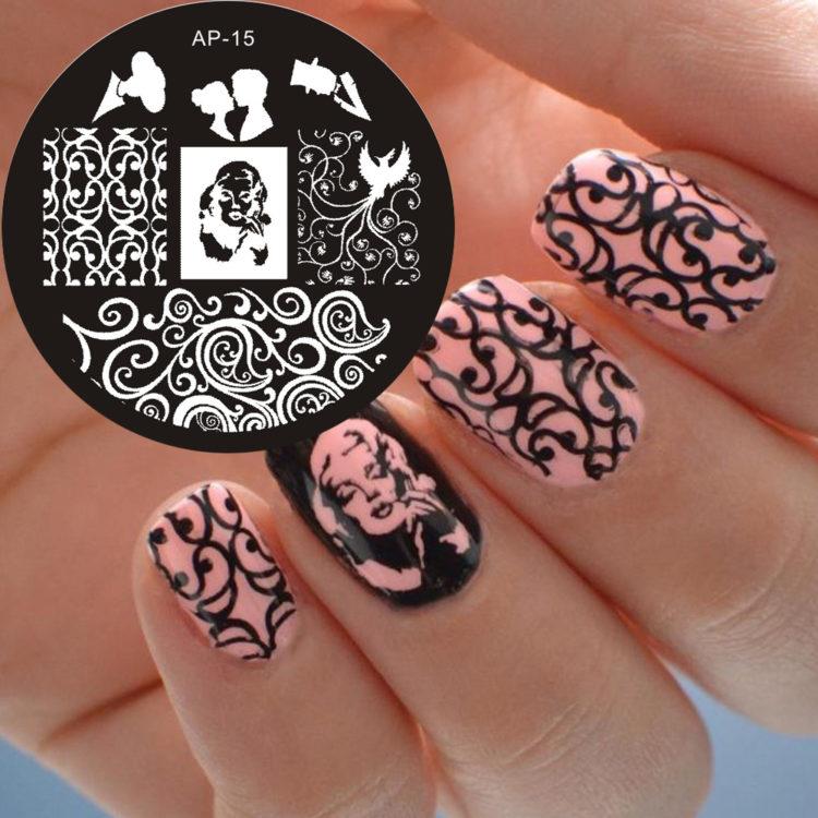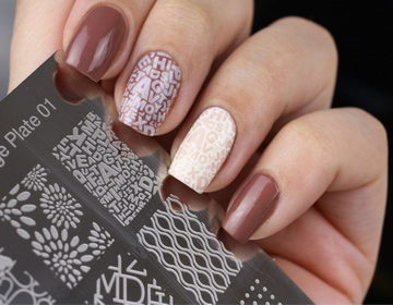 To make beautiful stamping or printing on your nails, purchase a stamping kit. Paint or varnish of three different types are taken on the base, the main background, the upper transparent coating. How to use a stamp, seal or plates, how to apply stamping gel varnish to make a beautiful stamping manicure? This is not difficult: make a regular manicure (should dry completely), then apply a small amount of saturated nail polish or gel polish with a nail stamp, carefully remove excess with a scraper by drawing it along the upper plane of the stamp. Press the stamp with the pattern on the nail plate. To fix, cover manicure stamping with transparent varnish. Both the stamping stamp and the stamping paint must be of high quality.