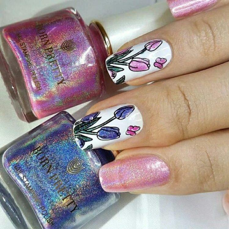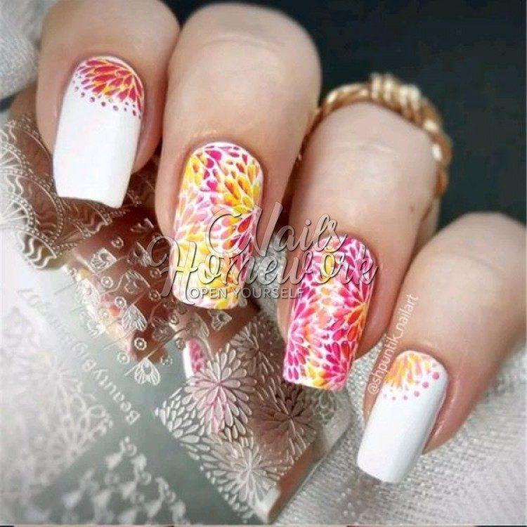 Stamping manicure attracts with its clarity, colorfulness and unusualness. To make the stamping design beautiful, the basic background for nails and paint are taken in contrasting colors. Check out the video on how to stamp properly. We hope that the first time you make an original chic manicure. The selection of photos posted below presents various decor ideas that you can use for yourself.