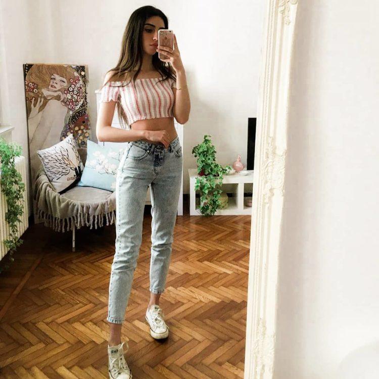 Stylish jeans with stripes - The most interesting global trend. Denim pants with stripes in the role of bright decor. The upper part of clothes, accessories and shoes are selected in the color of the stripes.