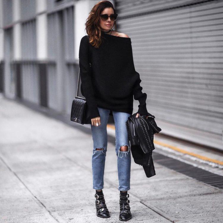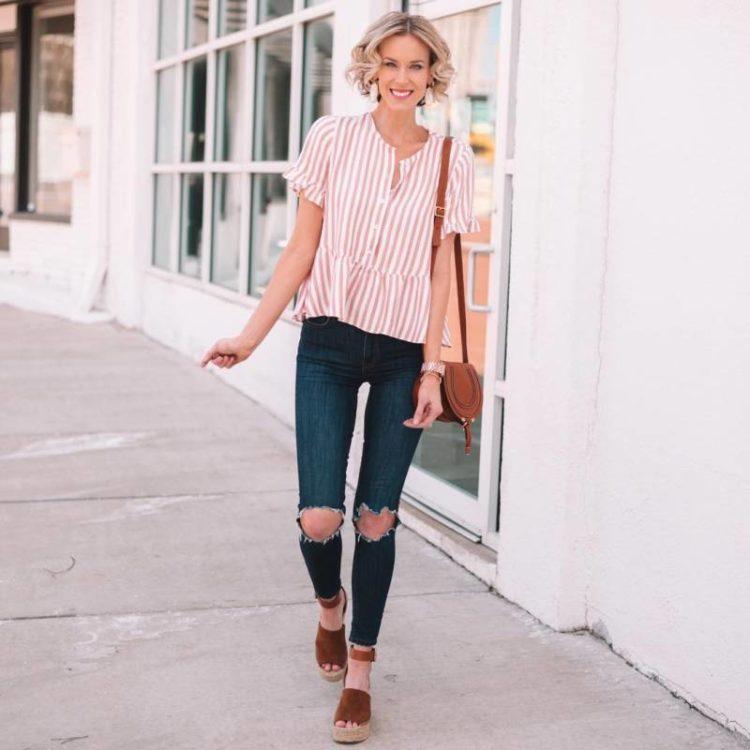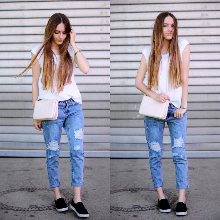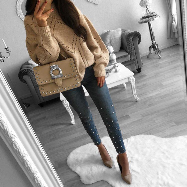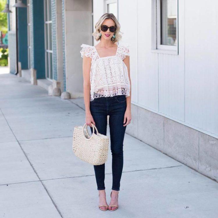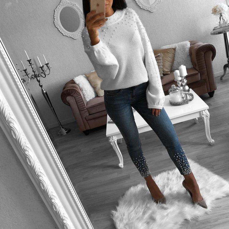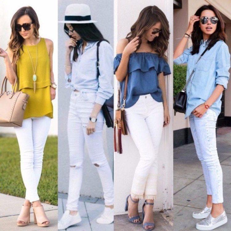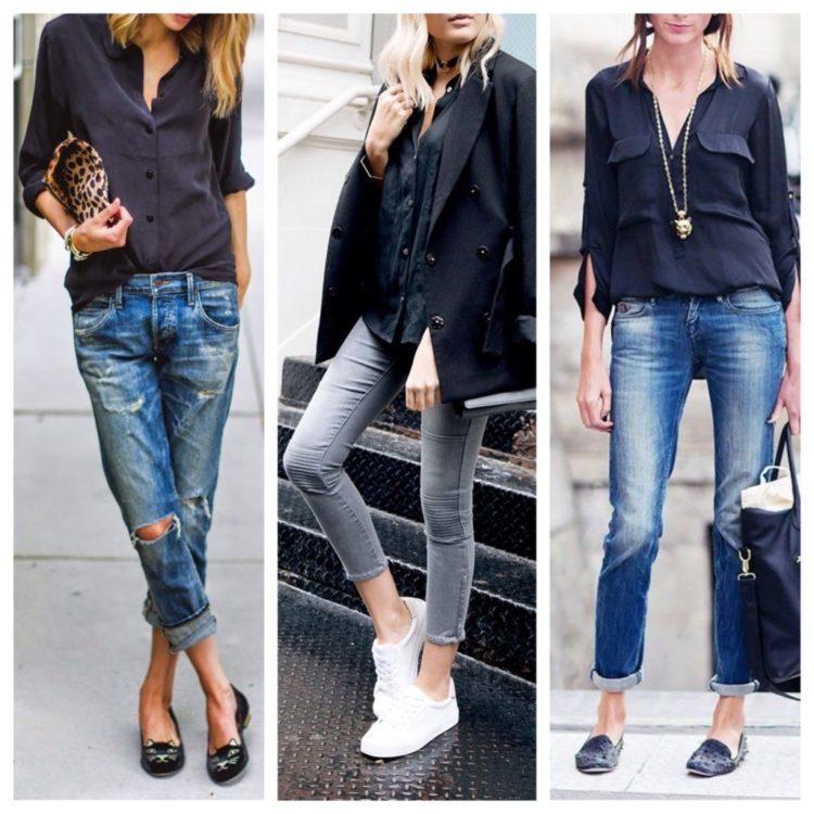 Stylish jeans can be worn with a light blouse or top, heeled sandals, and a classic jacket. Practical images with jeans complete the accessories: a bag on the handle over the shoulder, a necklace of large beads and the presence of a massive bracelet on the arm. When creating bows with jeans, remember that shoes play a huge role. Choosing shoes for jeans, be sure to take into account the images of the desired style and especially accessories that specify the main direction of the bow.