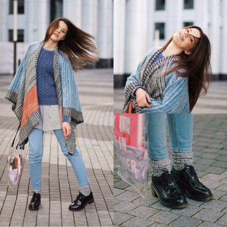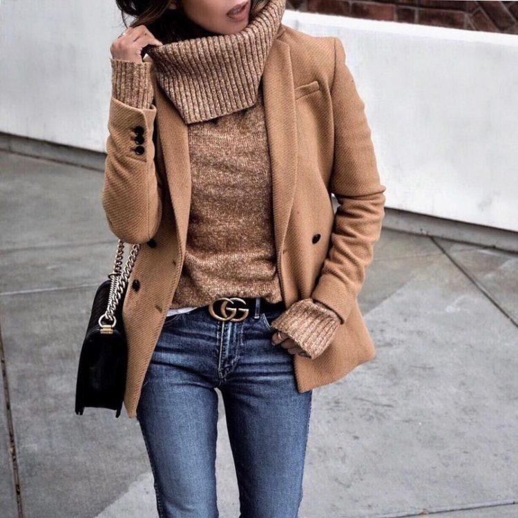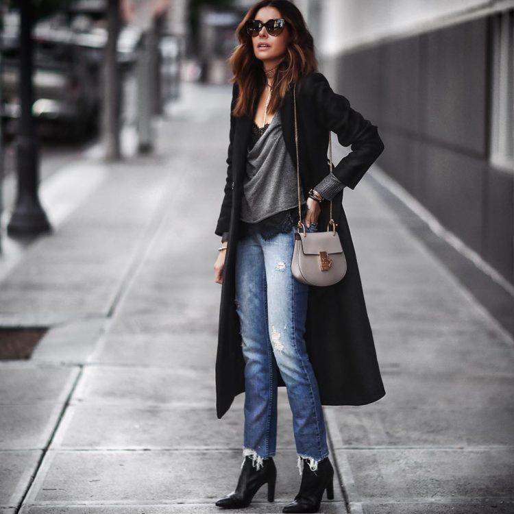 How to wear jeans in winter. In the top this winter, the image of a down jacket or coat with jeans. In autumn, it’s good to wear jeans with a jacket. A cropped coat with an asymmetrical hem is the most fashionable trend of this fall in the photo in our gallery.