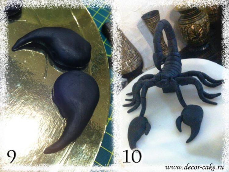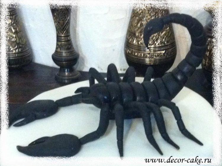Blinding pieces of mastic in the form of a scorpion is quite simple. The main thing is to choose the right color (black, red and gold will look advantageous). Sweet scorpions for cakes may not be 100% realistic - just to resemble an animal in shape. If you still want to strive for naturalism, find out how a scorpion is made from mastic; a master class can be found on the Internet. Look at the mastic scorpion cake look and decide which one you like best.