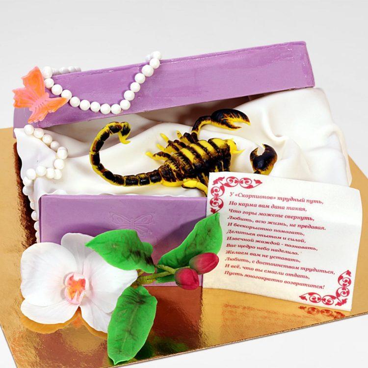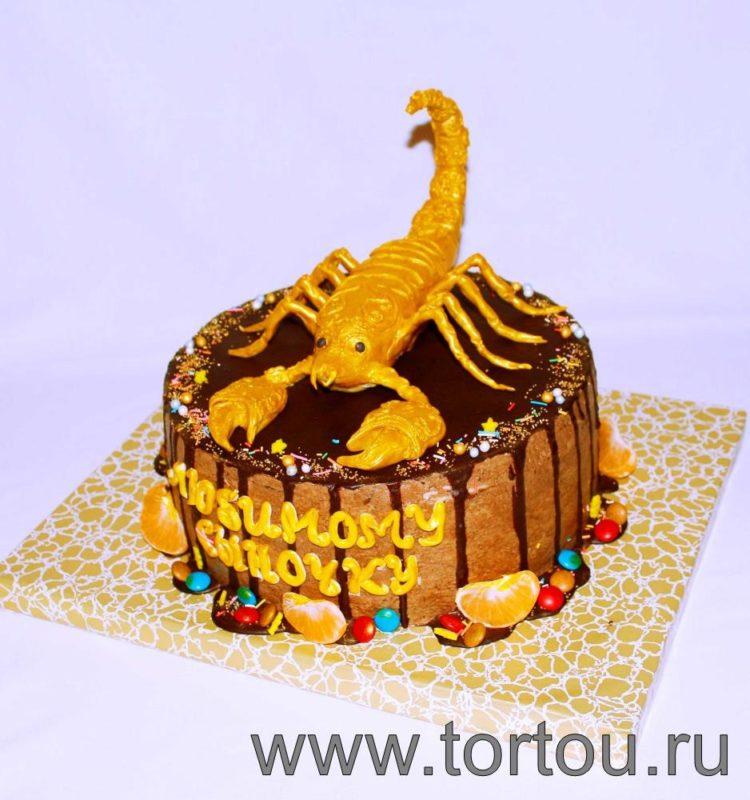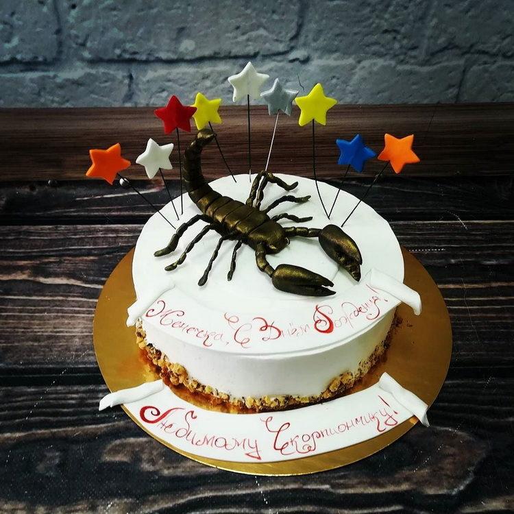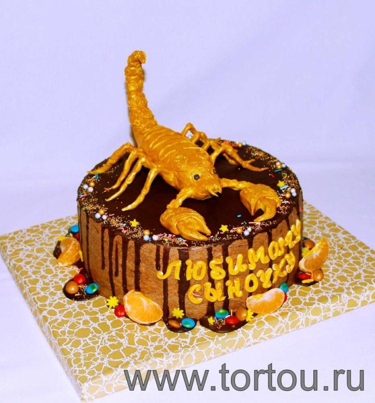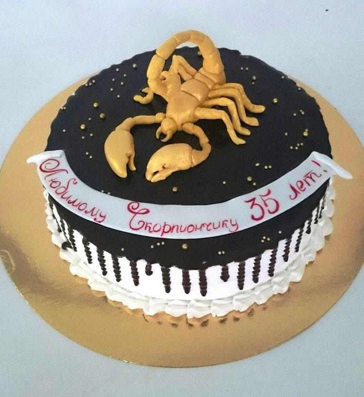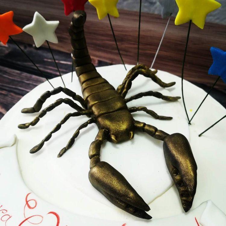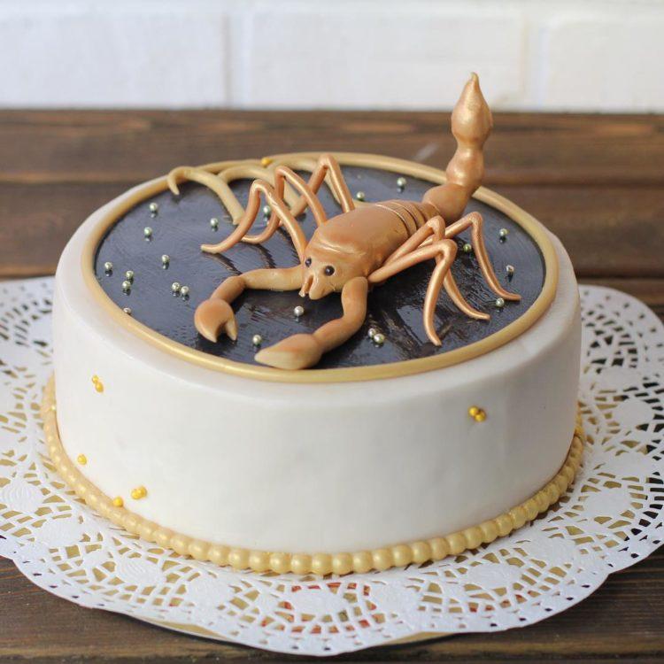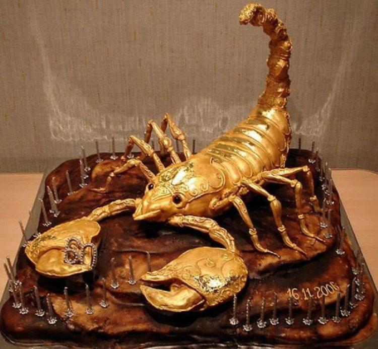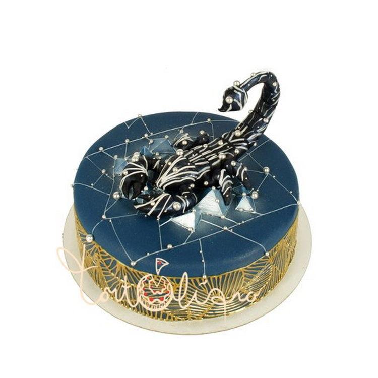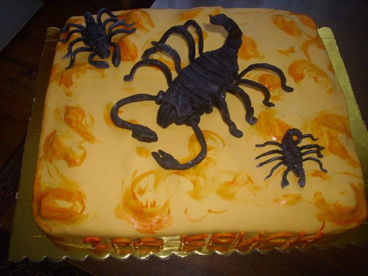 Every man dreams of such a cake, because a scorpion is an animal symbolic and revered by a strong sex. And if a scorpio is also a man’s zodiac sign, it will generally be a double hit. If you are wondering what a scorpion cake might be, photos will help you make a good choice.