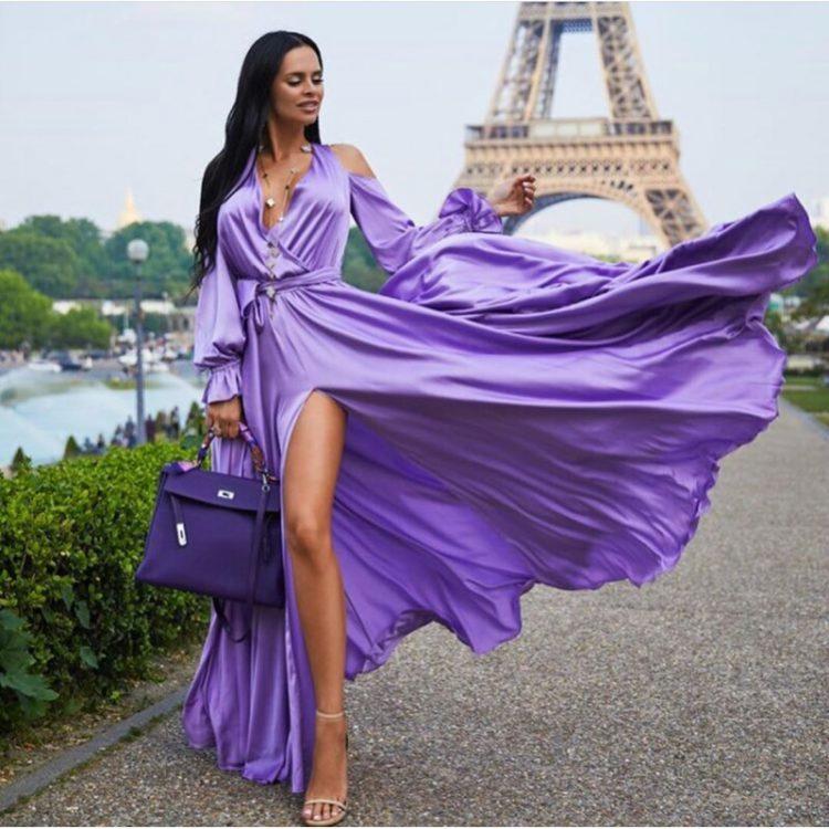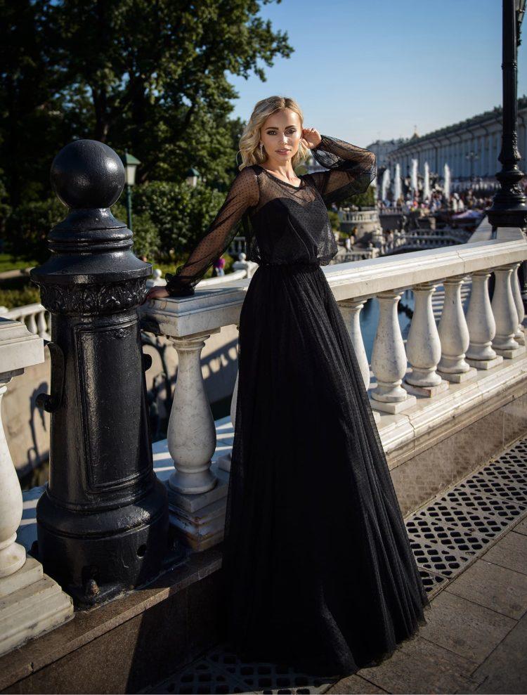 The most fashionable novelties, representing breathtaking evening dresses on the floor, are tight-fitting styles in which women, like pictures, acquire a fabulous look of ephemeral creations. This version of the outfit is appropriate at any most pompous event. A separate category suitable for special occasions is fluffy floor dresses and dresses with a train. When choosing a style, it should be borne in mind that for short girls, a long dress on the floor is preferable to a straight style. Light colors of such outfits are more suitable for slender women, and extra pounds successfully conceal long evening dresses in a floor of dark shades.