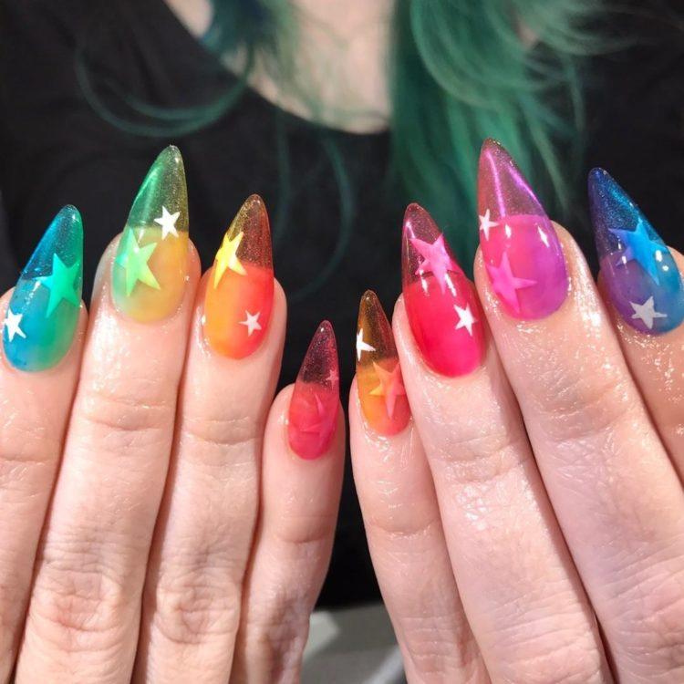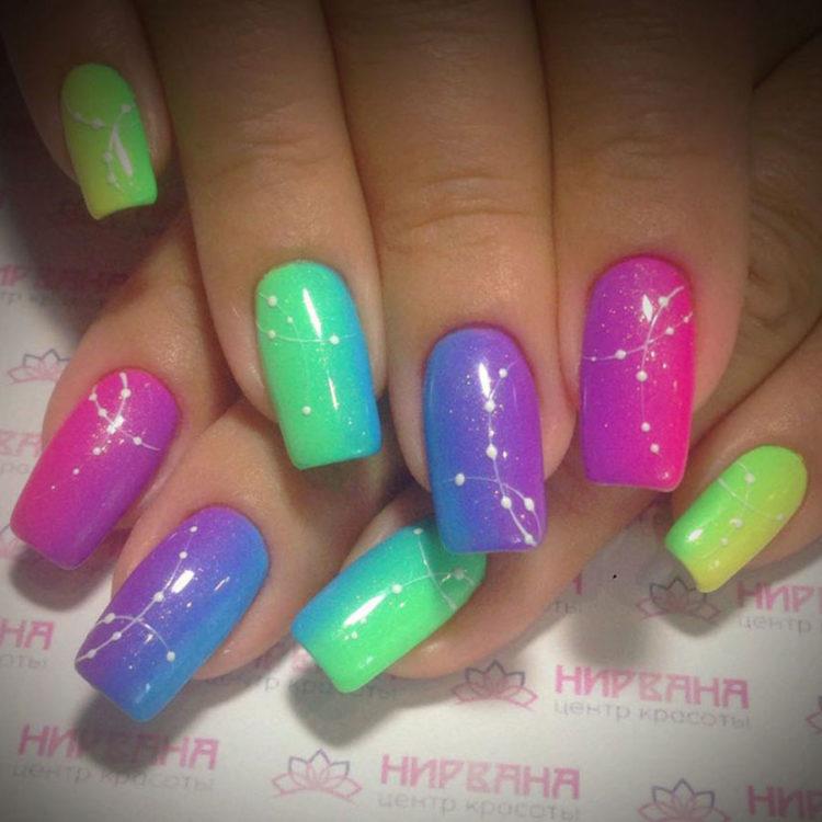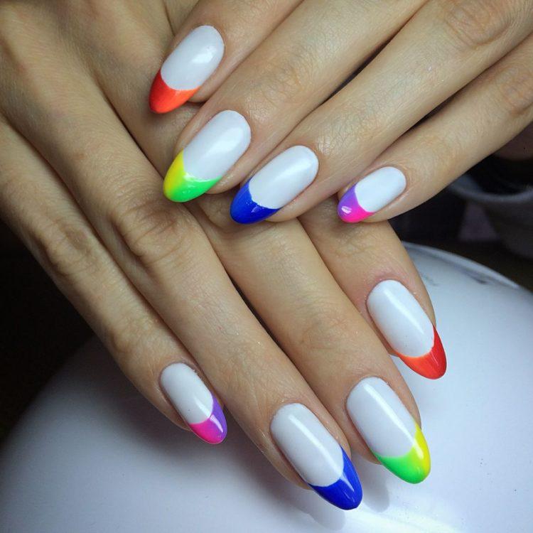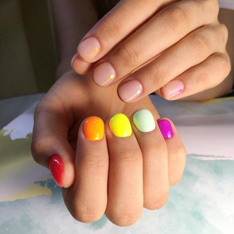 Of course, bright nails are far from suitable for all professions and not in every situation. A multi-colored manicure is extremely popular in the warm season, although in winter some fashionistas prefer a bright and unusual nail design. This is just the case when it all depends on your mood and state of mind. Sometimes photographers specifically ask to make a rainbow manicure with a picture (photos are beautiful, bright are obtained) to complement the desired image. If you like bright nails, the photos in the selection below will help inspire ideas for the most unusual designs.