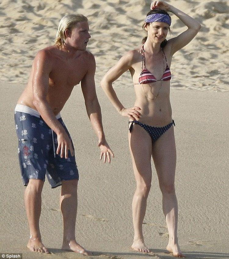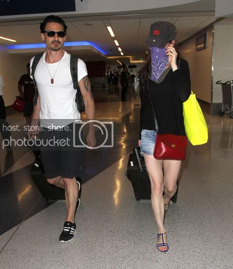 A little later, journalists photographed a girl in a bikini, short shorts and bright sneakers walking a dog. It was Juliette Lewis, (Zimbie's dog) walking on a leash in a red T-shirt.