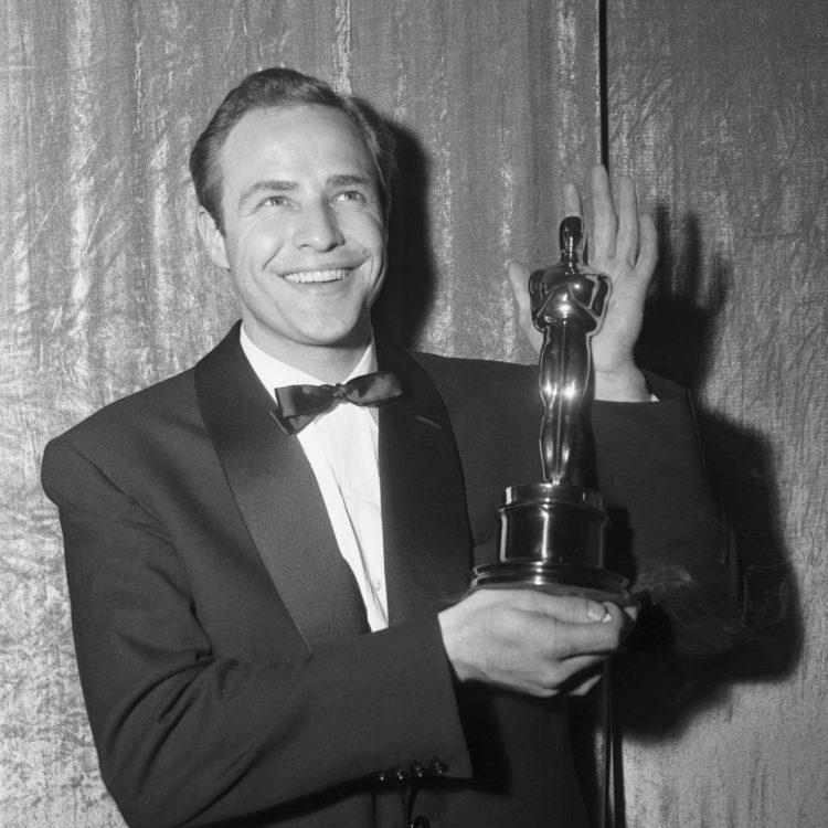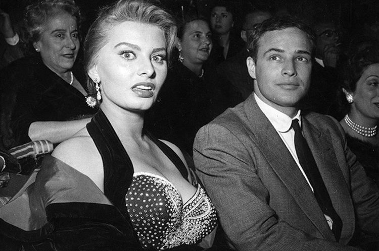 11th November 1954: Italian actress Sophia Loren and US actor Marlon Brando at a cinema in Rome, where Brando received the Francesco Pasinetti Prize for his performance in the film ‘On The Waterfront’. (Photo by Keystone / Getty Images)