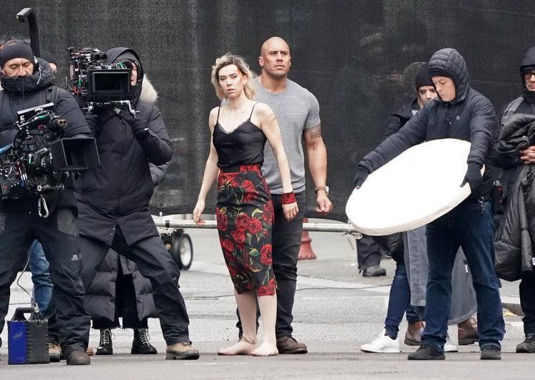 Scenes for Fast & Furious filmed in London today (24/11/18) with stars 'The Rock', Dwayne Johnson, Jason Statham and Idris Elba all on set, Elba seemed to be having some costume issues though in his leather biker outfit complete with an assortment of weaponry