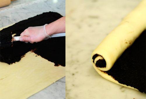 - We tightly roll the dough into a roll so that it does not fall apart. The tighter you get it, the more your buns will resemble the original and will not fall apart during baking. But do not overdo it, do not forget that for the correct Synabon of turns it should turn out no more than five.