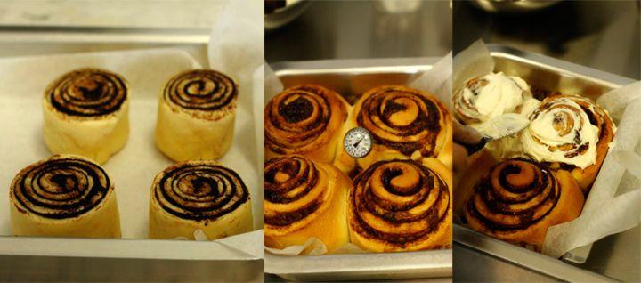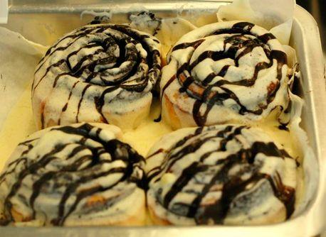 - When the buns have cooled slightly, apply creamy cheese icing.