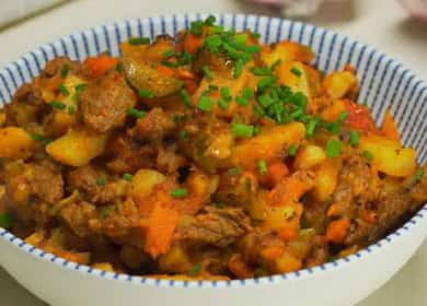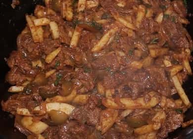 When choosing which dish to cook, you often found yourself in a Tatar recipe and wondered what the basics were and what the basics were about. Azu is a traditional dish of Tatar cuisine, which usually consists of fried meat: lamb, beef and even horse meat, with the addition of potatoes, tomato for sauce, sometimes onions and carrots. This dish is prepared with pickles, in its consistency resembles stew. But it has a hot sauce, you can adjust the sharpness to your liking.