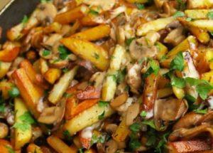 Learn how to cook the most delicious fried potatoes with mushrooms and sour cream according to a step-by-step recipe with a photo. How much do you need to fry mushrooms