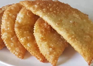 How to cook the perfect dough for chebureks, as in chebureks. A quick and easy recipe with step by step photos. Tips for working with dough and filling. Video.