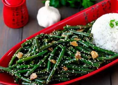 One of the recipes for the preparation of green beans with garlic with detailed photos. The necessary ingredients, inventory and utensils, calories, video recipe.