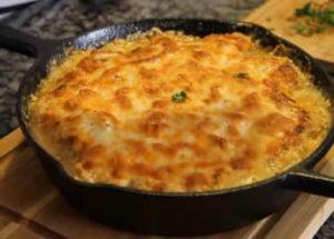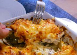 French beef is made from young beef to make the dish more tender and juicy. In contrast to the classic recipe, potatoes are cut in circles, which goes with the first layer. In addition, small pieces of butter can be spread on a layer of potato to make the potato more tasty and baked. Also in this recipe champignons are used that are laid out on a layer of meat.