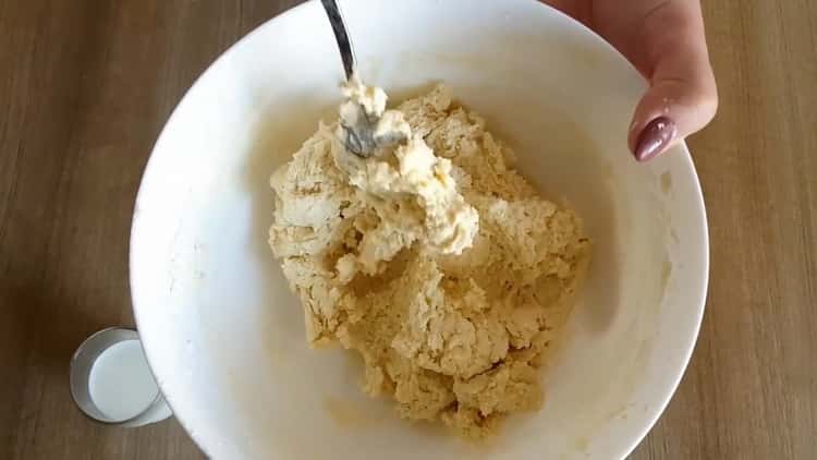 - Mix flour, baking powder, a pinch of salt, and sift everything to the oil mixture. Mix everything well with a spoon until a homogeneous mass without lumps is obtained.